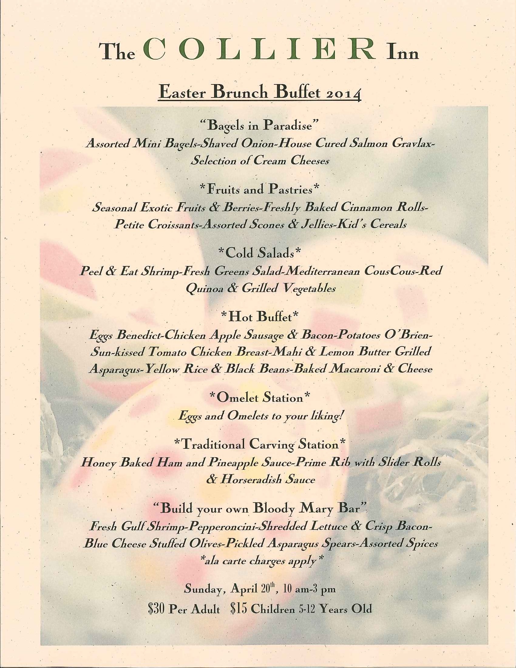 We have planned a fun-filled, amazing weekend for Easter this year and Chef Dakota has planned a special brunch menu for Easter Day!!