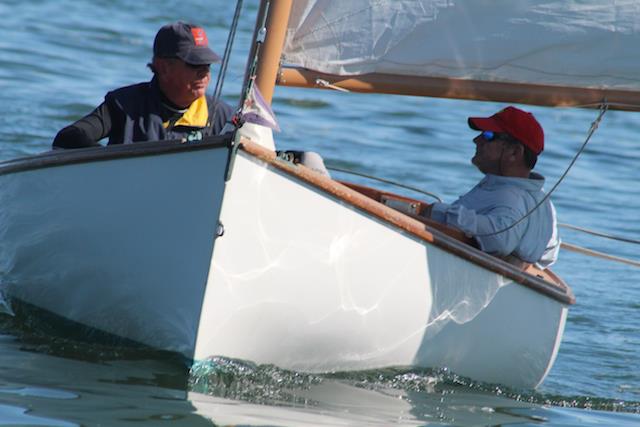 The race committee went out to check the breeze, and found that it had shifted to the west a bit. So, it could quite happily run two more races in the best breezes we had both race days. to end the regatta with eight races scored for the Sandpipers, and four, one on Friday, for the non-Sandpiper catboats. The only real problem was the RC forgetting to set the finishing line for the seventh race on time, but it finally was set up at absolutely the last minute.