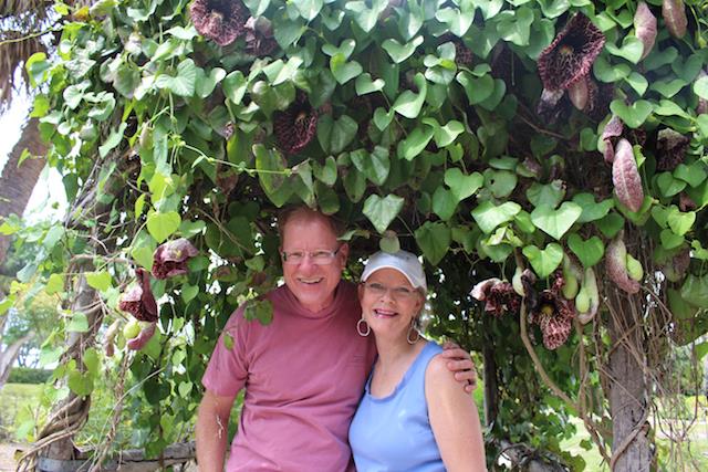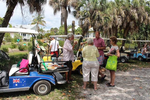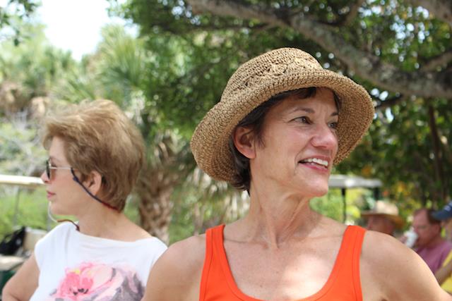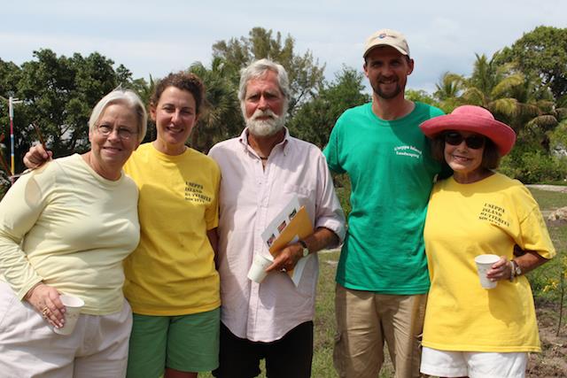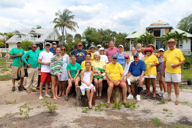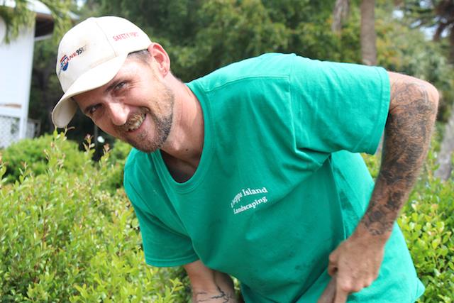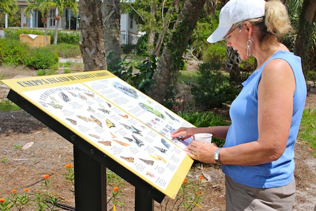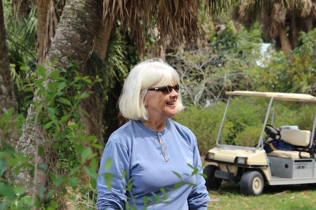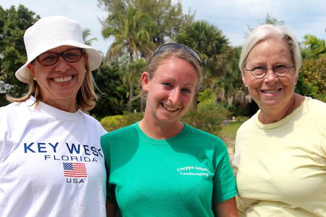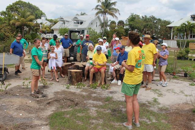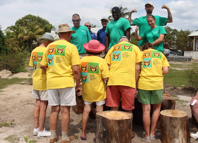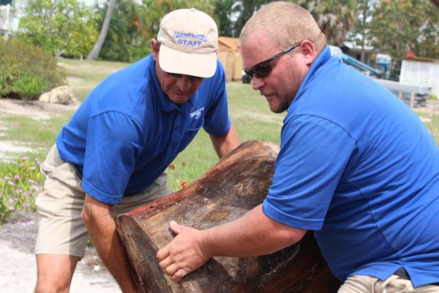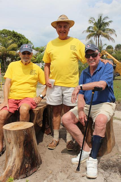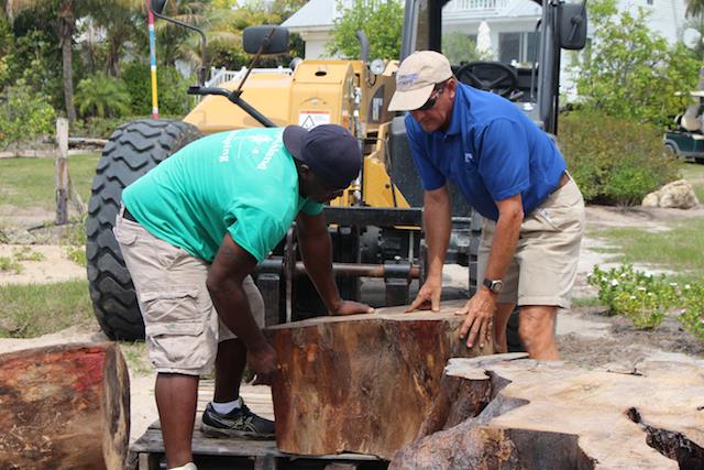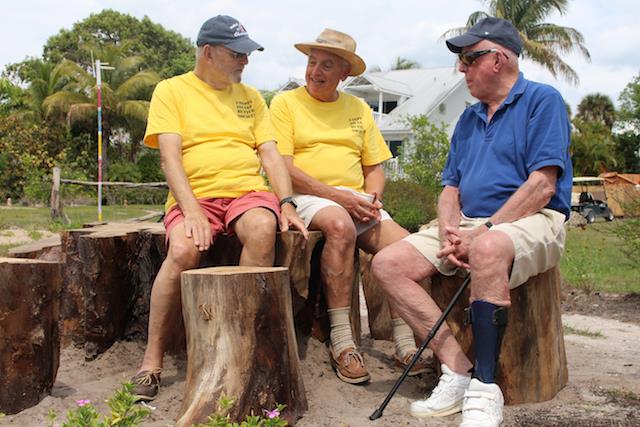 Heavy-duty equipment and men in action, members of the Service Department arrived. Tall trees once majestically guarded the Sumwalt Museum eventually growing too big nefariously pushing roots underneath, sticking branches through the roof. They had to be cut down, but in the timeless spirit of Useppa, chunks and pieces were delivered to the Butterfly Garden. A stump is a now table and fat branches places to sit.