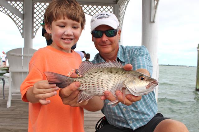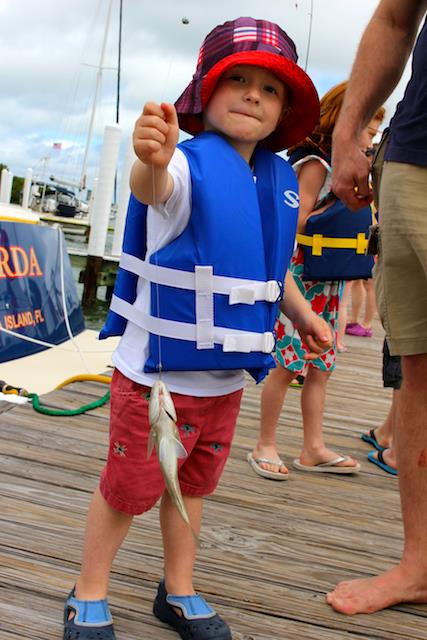 Kids back and forth up and down the dock either holding a rod with the fish they caught or the shrimp they were using to catch the next one. Grownups were equally busy cheering the lucky ones, consoling the others, baiting lines, netting a catch, and just having old-fashioned fun.