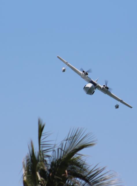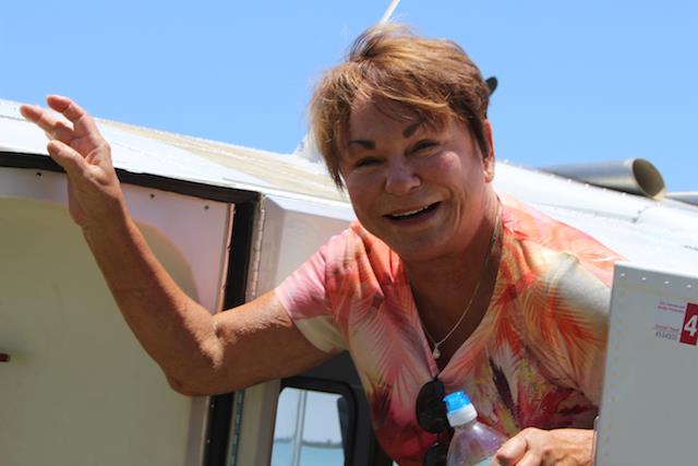 Finally, their good deed done, the Bairds and Mark took off one last time, tipping the wings of the World War II plane in good-bye. Useppans on the beach waved back.