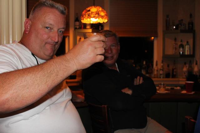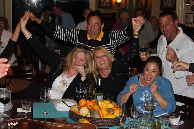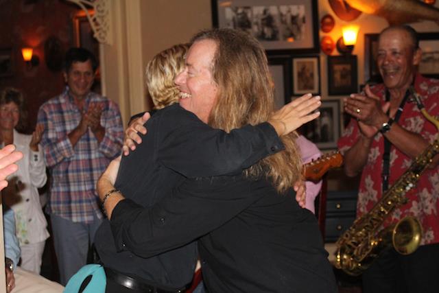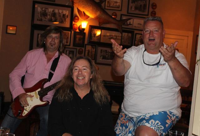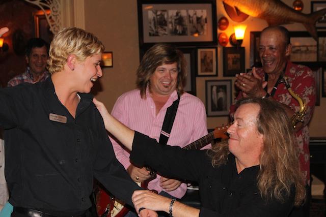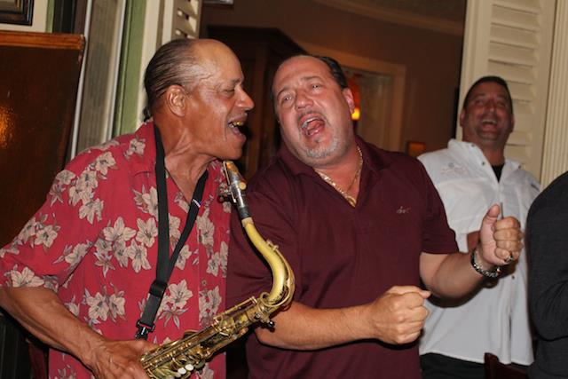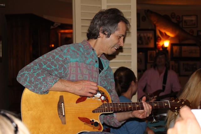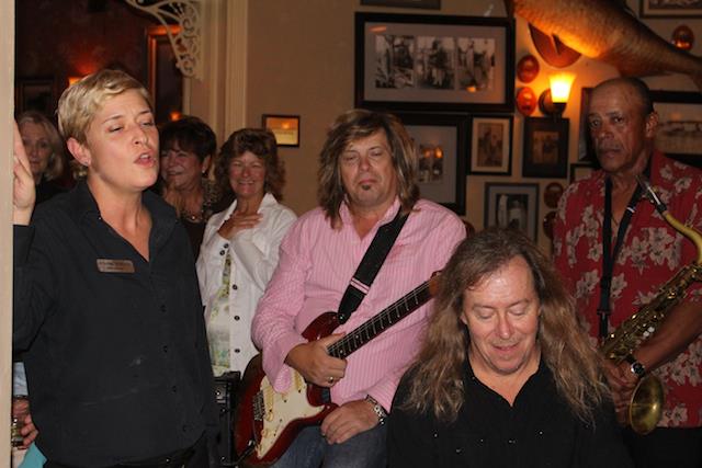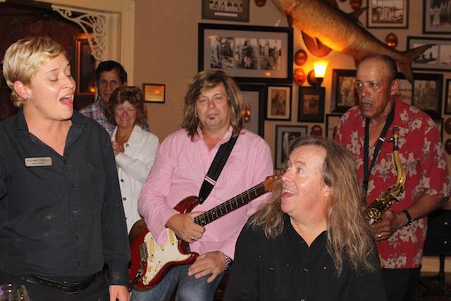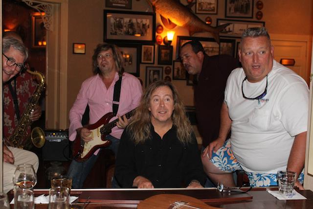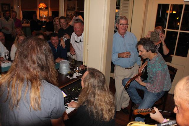 Last Saturday night at the Collier was one to remember.  Stacey and John Sutherland with their guests were having dinner in the Izaak Walton dining room.  Homeowners on the island had heard members of the Sutherland party playing the night before at The Tarpon Bar .  Residents and friends gathered in the bar at the Inn.  Would the band play again?  Dan O'Connell asked and found out they didn't have enough instruments.  O'Connell scrambled up and down the Pink Path scavenging guitars.  Tunes had his Sax and Mark Hoyt could play the Collier piano but to complete the band two more guitars were needed for Jerry Riggs, Barry Dunaway, and Tommy Rich.  Mission accomplished and the music and dancing began, and it was after midnight before everyone went home.