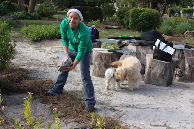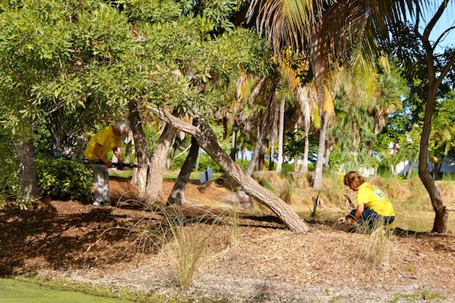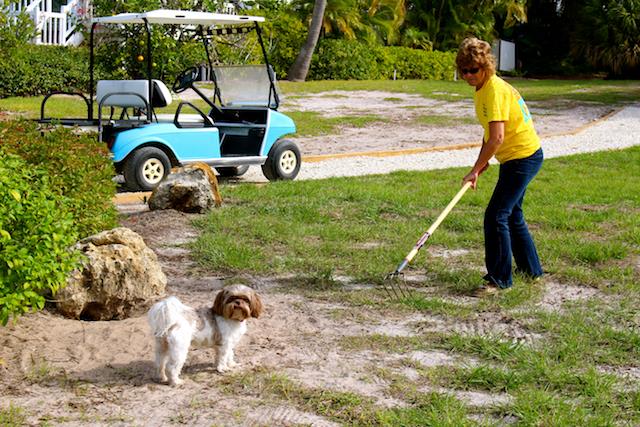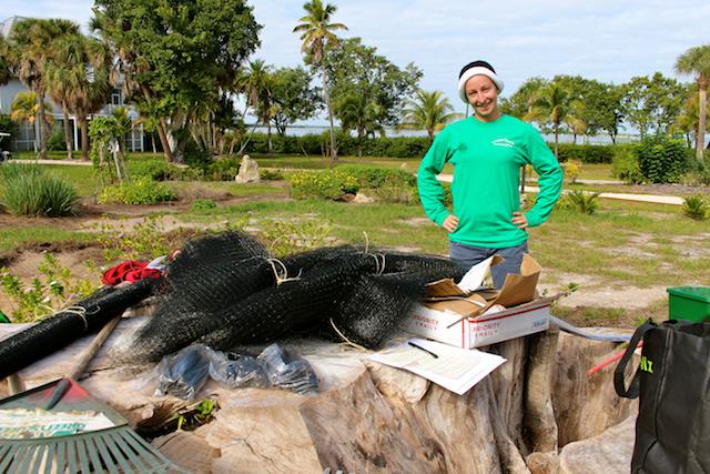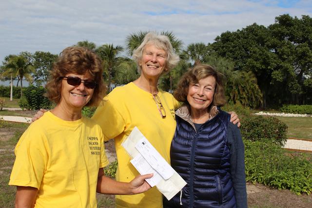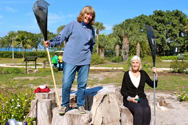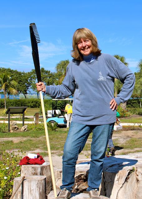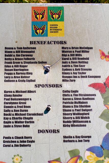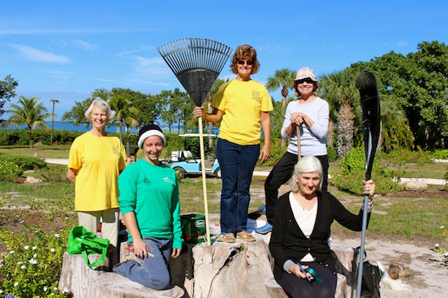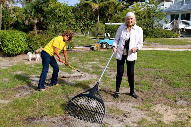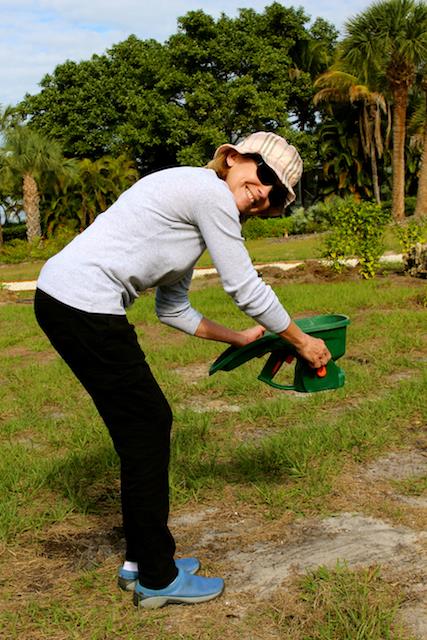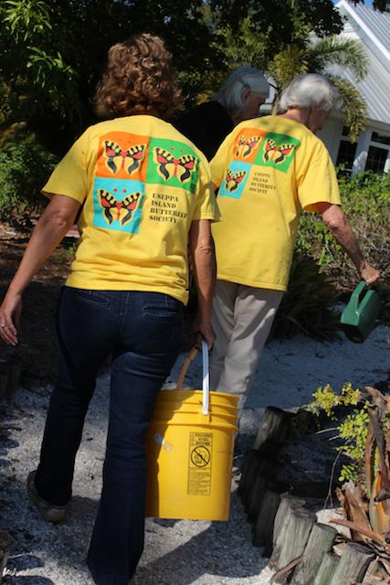 Useppa Butterfly Society volunteers joined Rachel S to plant butterfly friendly wildflower and grass seed in several island locations. Last summer, Karen Kaufman researched and ordered four seed mixtures appropriate for Useppa's saline, sandy conditions. Recommended by the Florida Wildflower Growers Cooperative were Butterfly and Hummingbird Mix, Beach Mix, Avon Park Wet Flatwoods Mix and Florida Super Nova Scrub Mix. Early one morning, the Chris and Rachel's team cleared small plots of ground for seeding around the Reclamation Pond adjacent to the Butterfly Garden; behind the seawall along the beach; at the entrance to the Village behind Landscaping; and in the Butterfly Garden itself. Paul Webb-Martin contributed his agricultural knowledge and produced a barbecue load of wood ash to blend with the seeds to help dispersal. With the direction and guidance of Judith Sear and Rachel Stack, Donna Anderson, Ginny Amsler, Pat Symonds, Suzy Trino, and Kathy Stevenson raked, scattered seeds, put down protective wire mesh and watered.