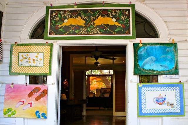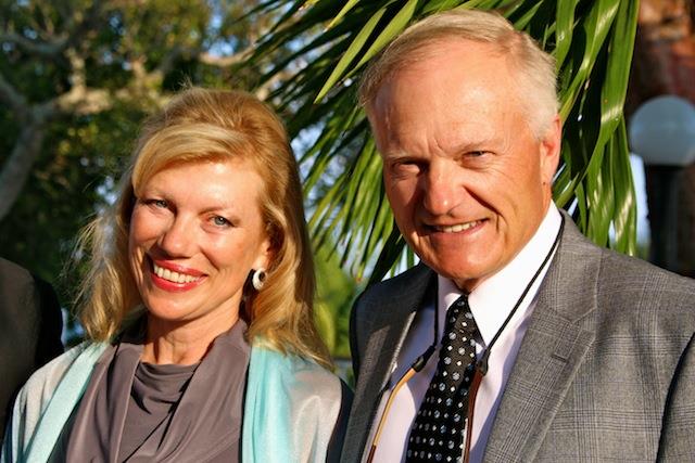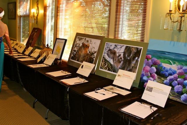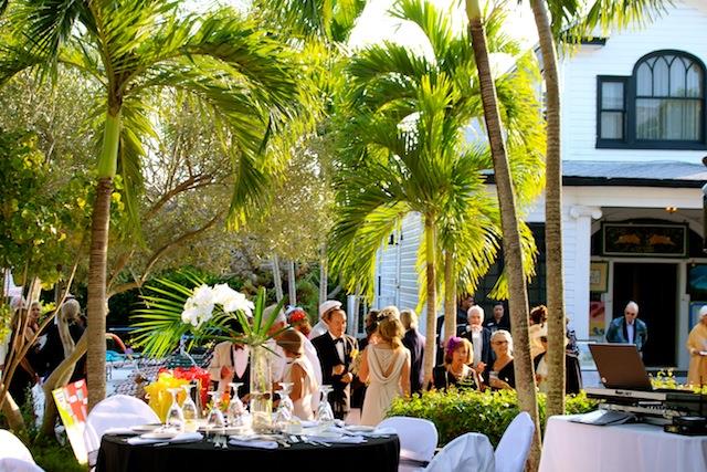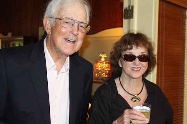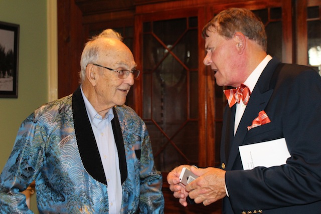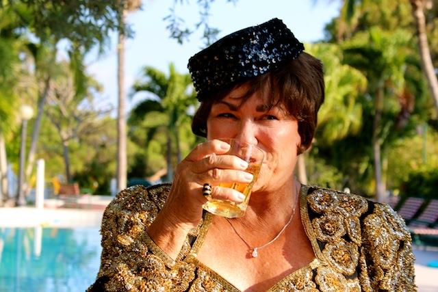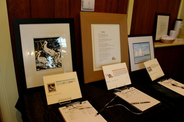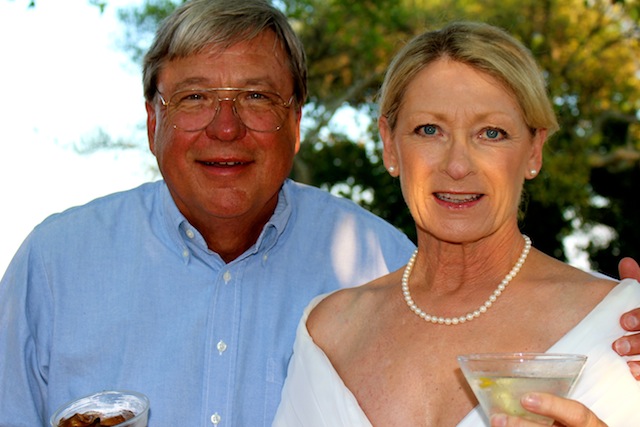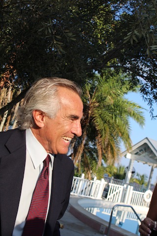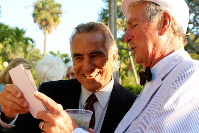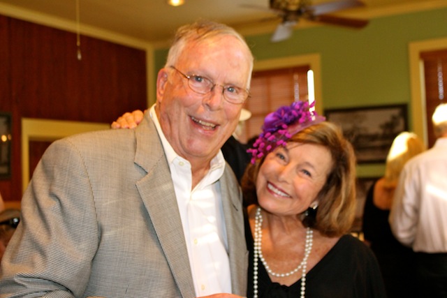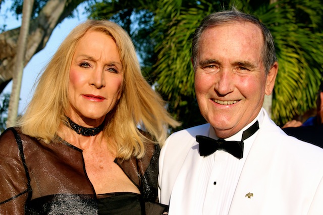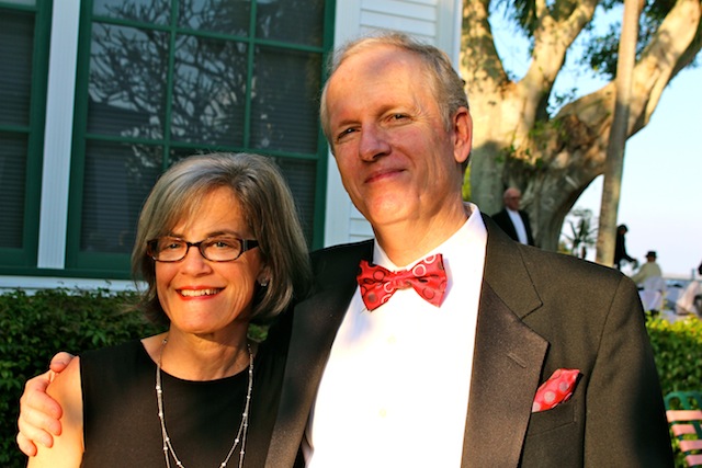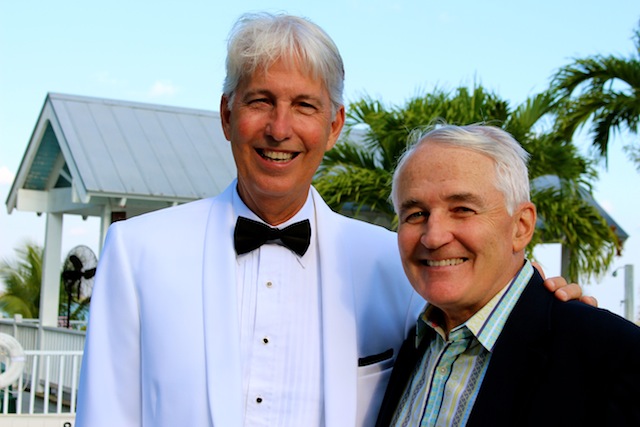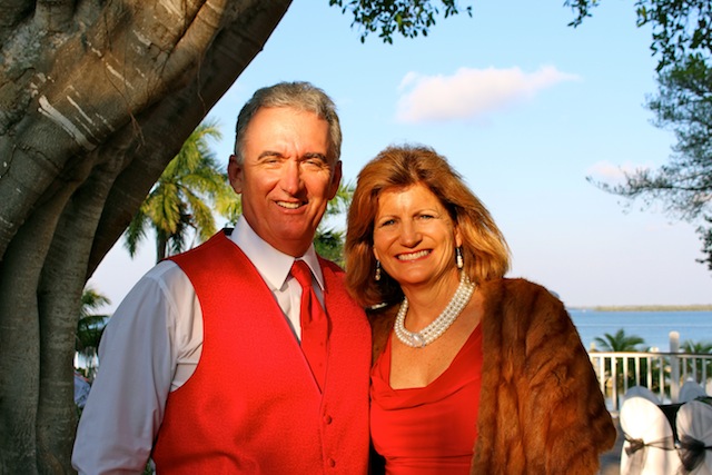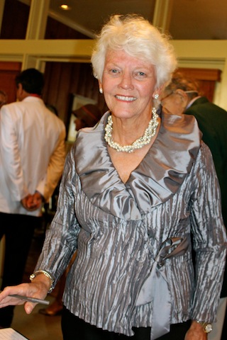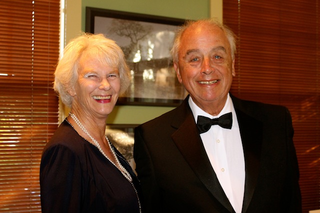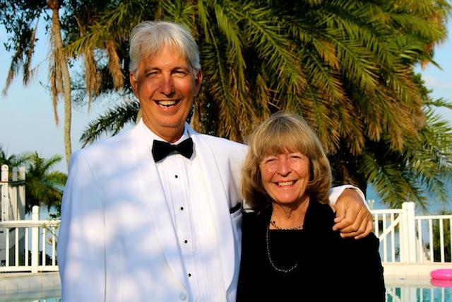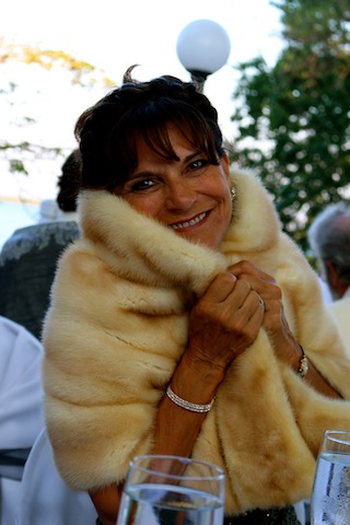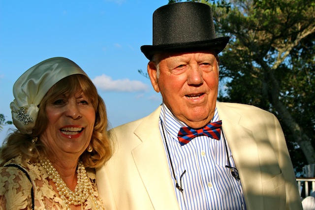 The Useppa Island Historical Society's Fundraiser was just a delightful dinner party for the 79 men and women who attended. The evening was magical - the black and white motif with all the chairs wrapped in white, with black bows, the black and white tablecloths, and the beautiful silk orchids in the center of the tables set the stage. Everyone joined with enthusiasm, dressed as they would have been in 1935. The men were in black tie, many with white dinner jackets, and some in "cruise wear." The ladies came in beautiful dresses, some with hats, and a few in seashore summertime outfits - baggy pants and tops with square shoulders, all in the spirit of the 30's.