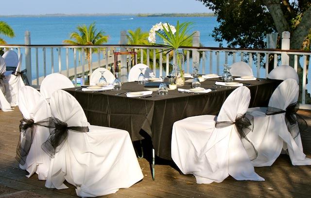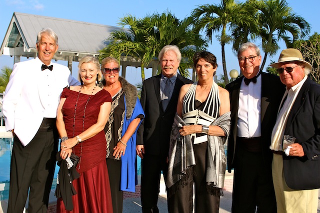 The Useppa Island Historical Society's Fundraiser was just a delightful dinner party for the 79 men and women who attended.  The evening was magical - the black and white motif with all the chairs wrapped in white, with black bows, the black and white tablecloths, and the beautiful silk orchids in the center of the tables set the stage.  Everyone joined with enthusiasm, dressed as they would have been in 1935.  The men were in black tie, many with white dinner jackets, and some in "cruise wear."  The ladies came in beautiful dresses, some with hats, and a few in seashore summertime outfits - baggy pants and tops with square shoulders, all in the spirit of the 30's.