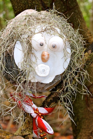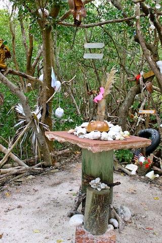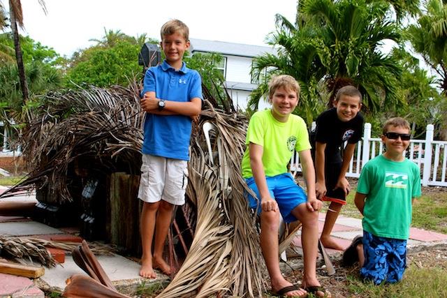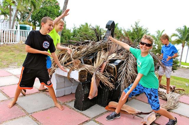 Boys on the island built a chess piece and palm frond fort. At Useppa's southern tip, fresh flowers, new notes and creative trinkets are the personal signatures left behind by visitors to the grotto tucked under the mangroves. Bill Marquardt, Director of the Randell Center across the water, and his partner from the University of Florida, fellow archaeologist Karen Walker stopped by for an Open House at the Coyles' home. Islanders dropped in to hear the latest in Randell news and learn more about Karen's latest discoveries in Useppa digs.