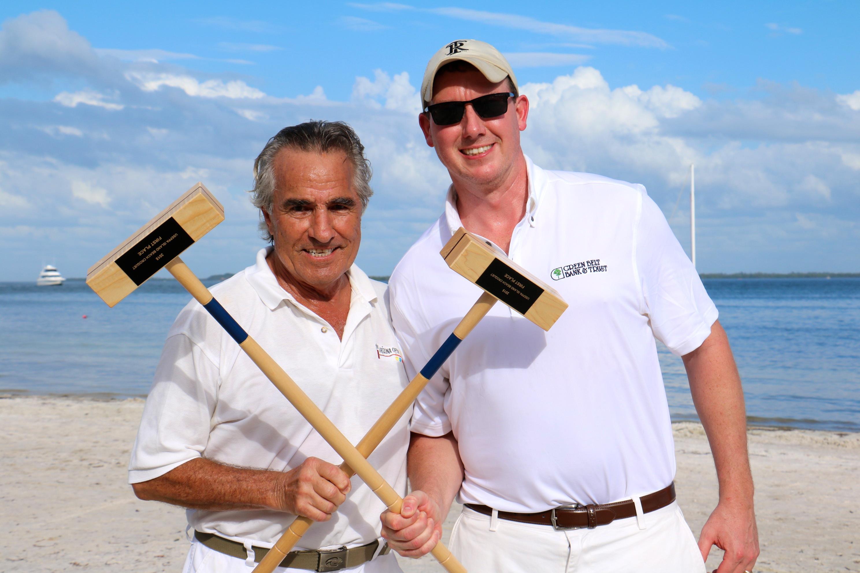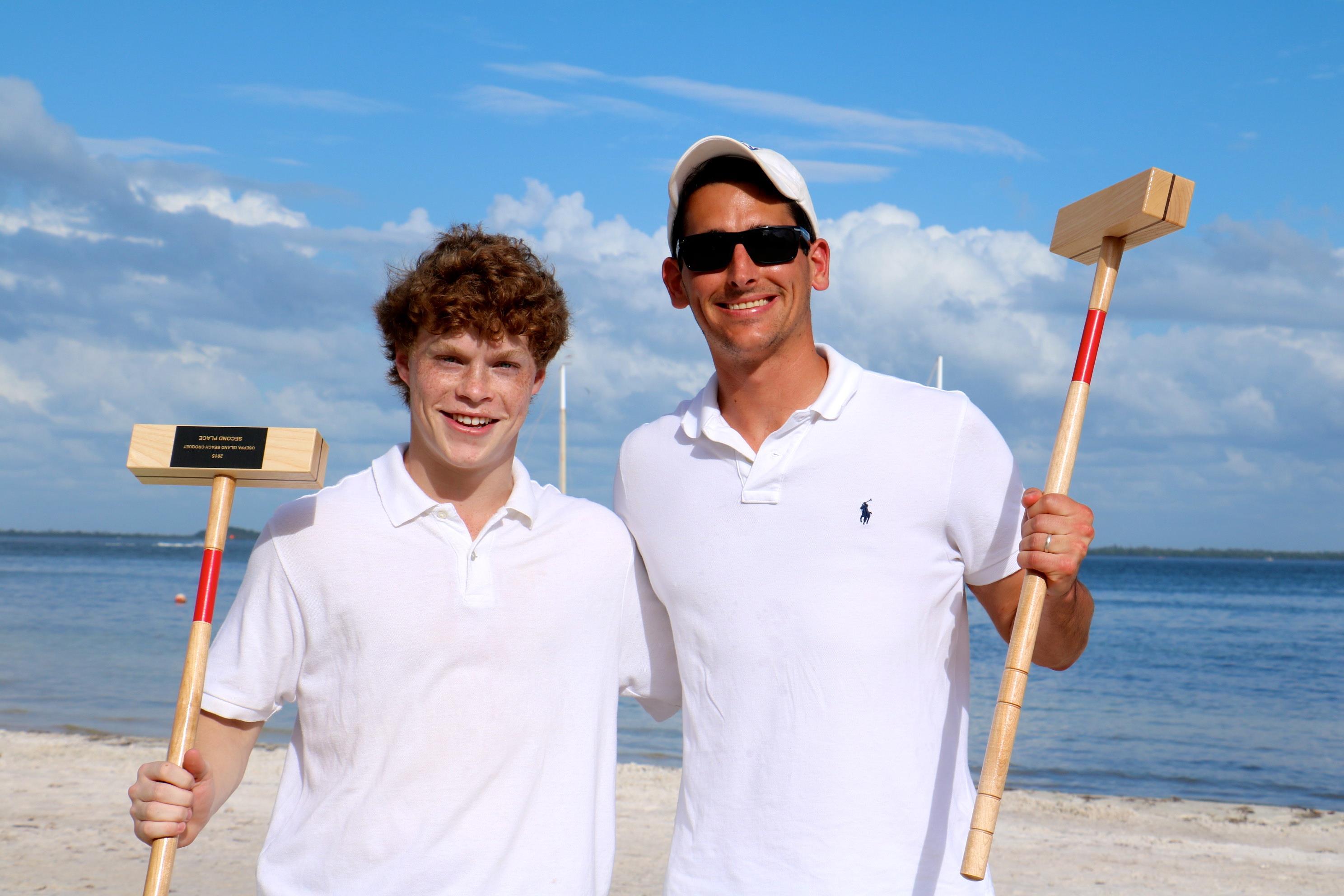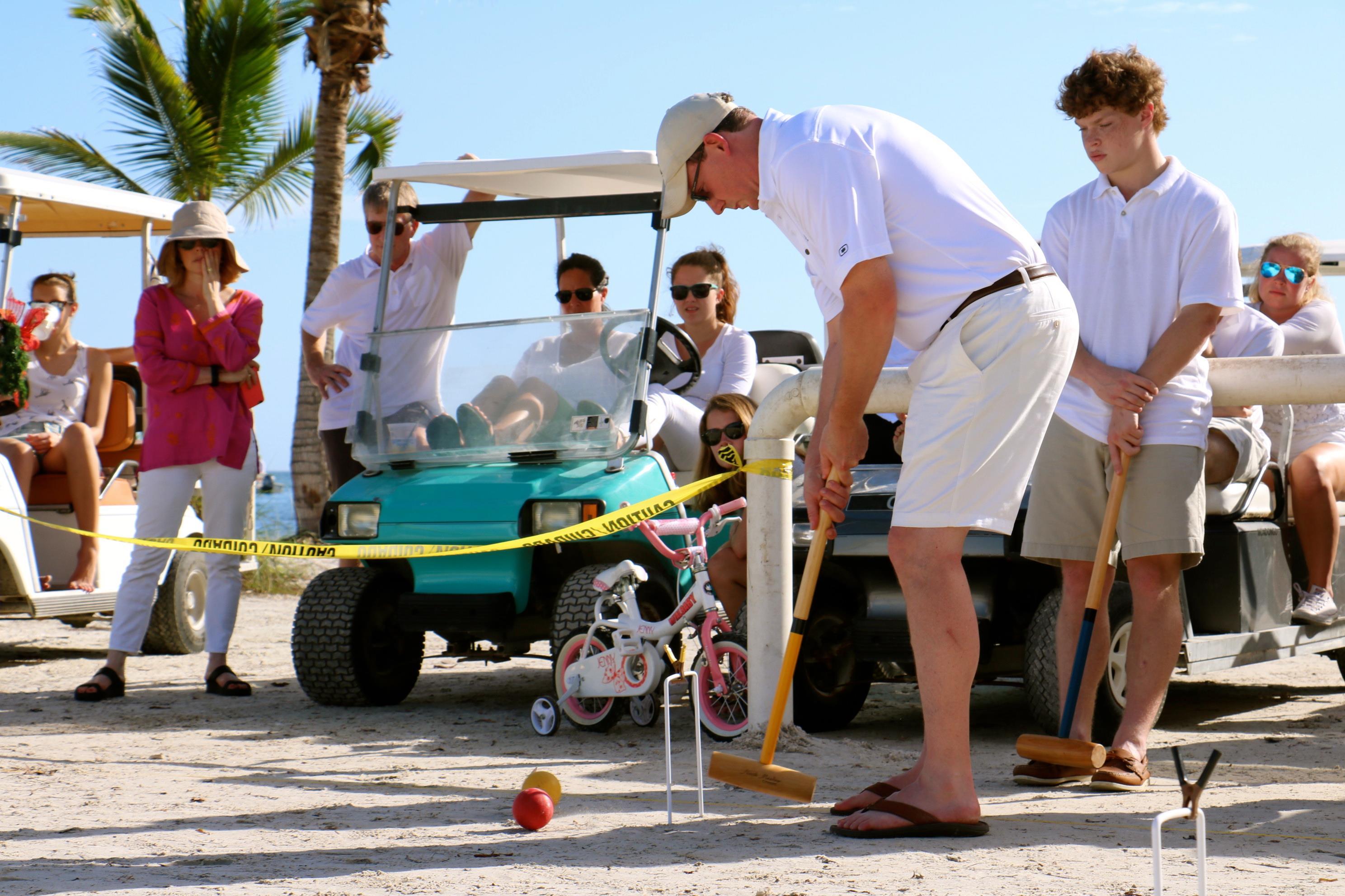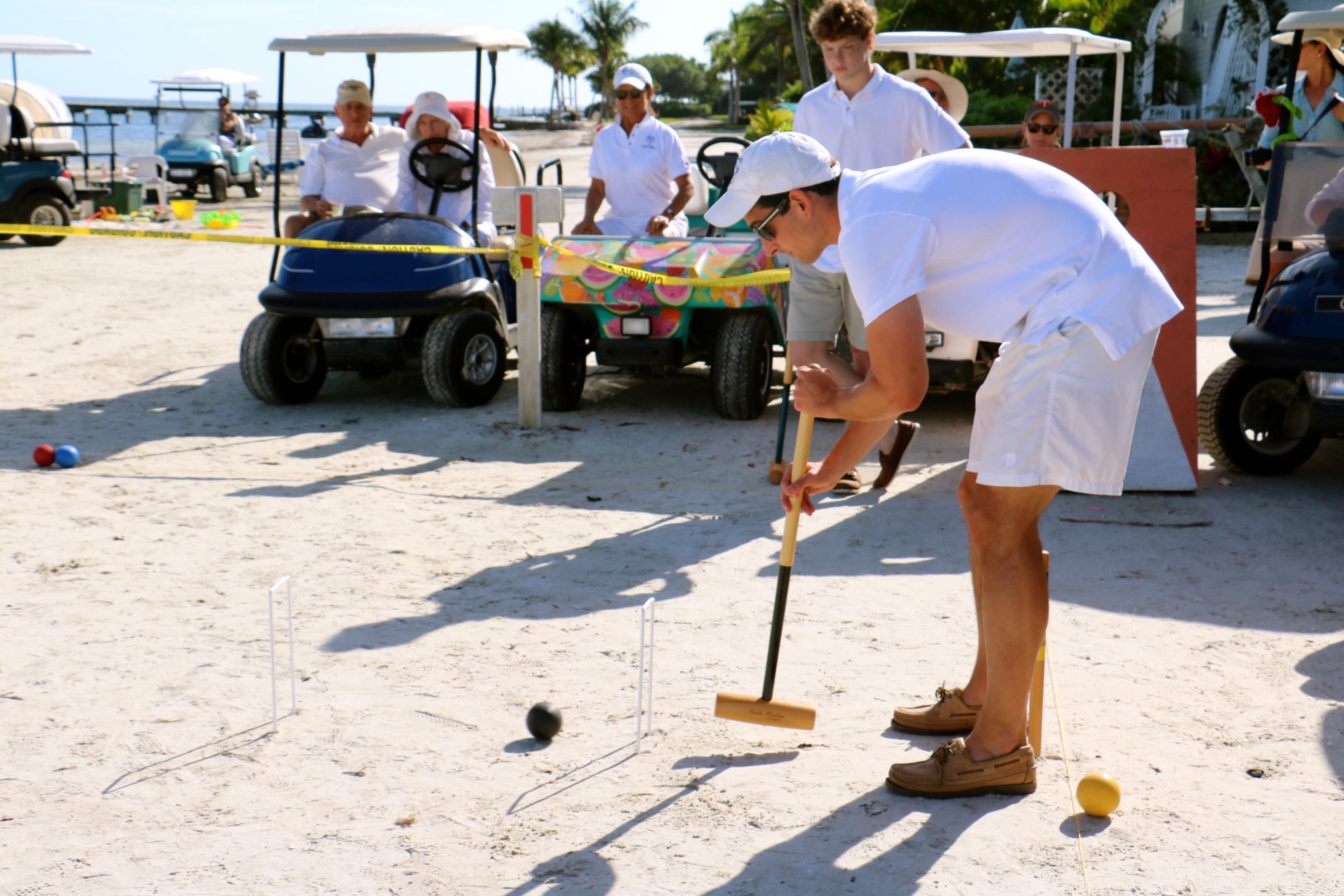 The final croquet match pitted perennial nine wicket champion Mike Zuro and his novice partner player Chris Weaver against seasoned player Tyler Sipprelle and his beginner partner Sam Pastor. Zuro and Weaver won that game, but everyone who played on the beach during the long day, both winners and losers had a great time. That’s what croquet on Useppa is all about.