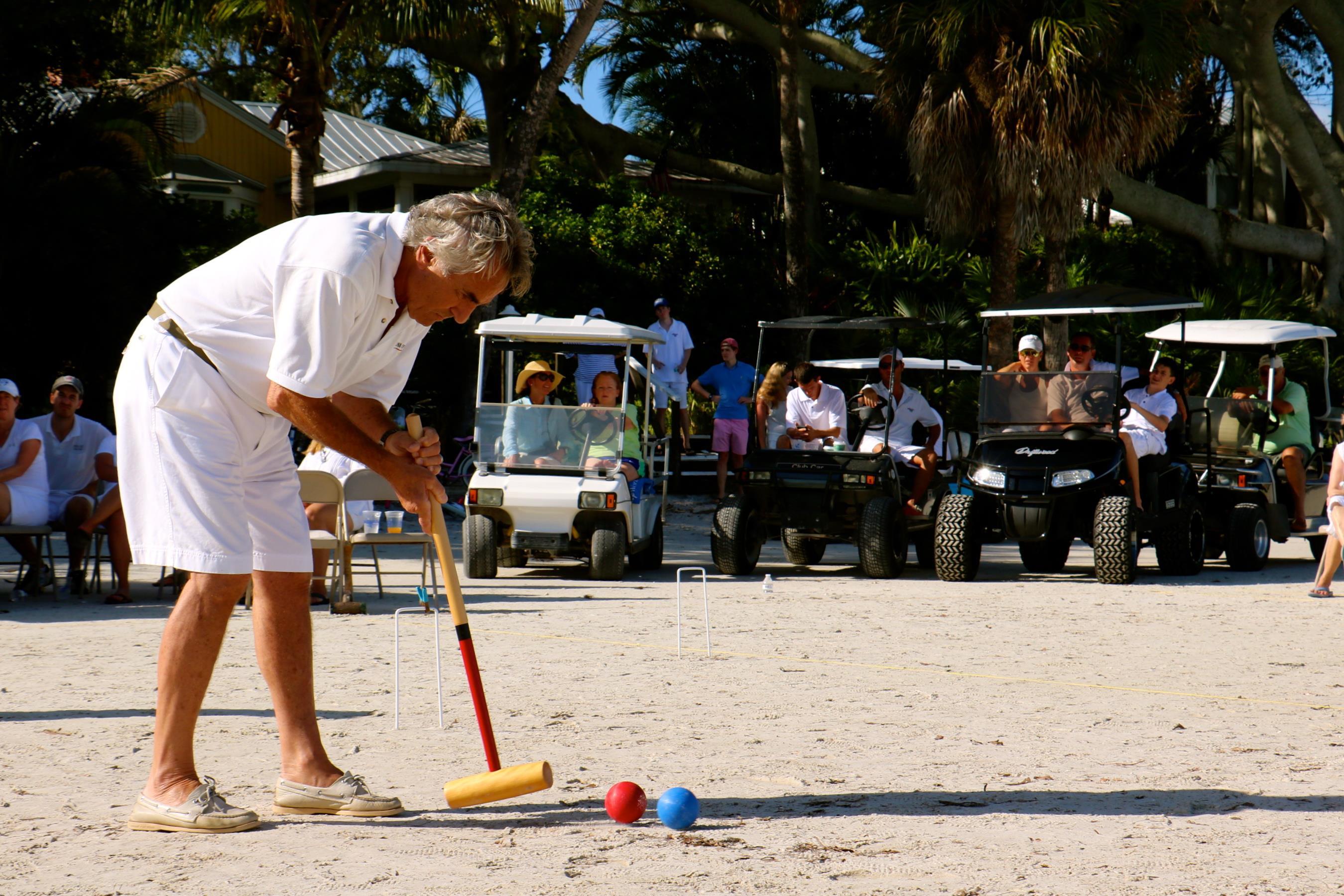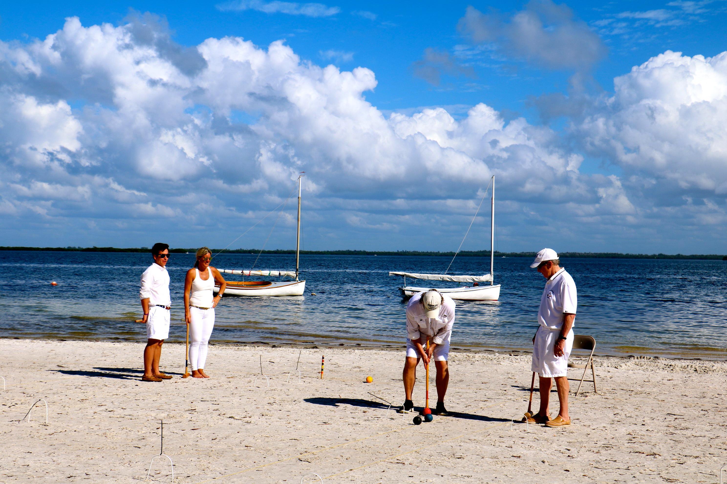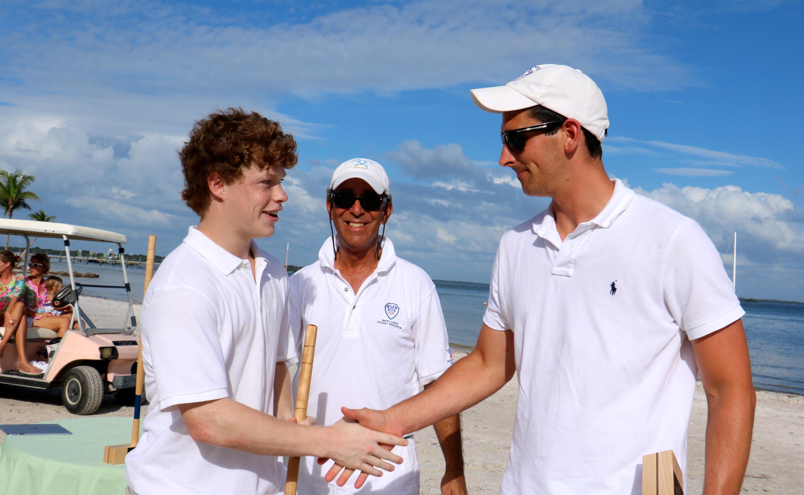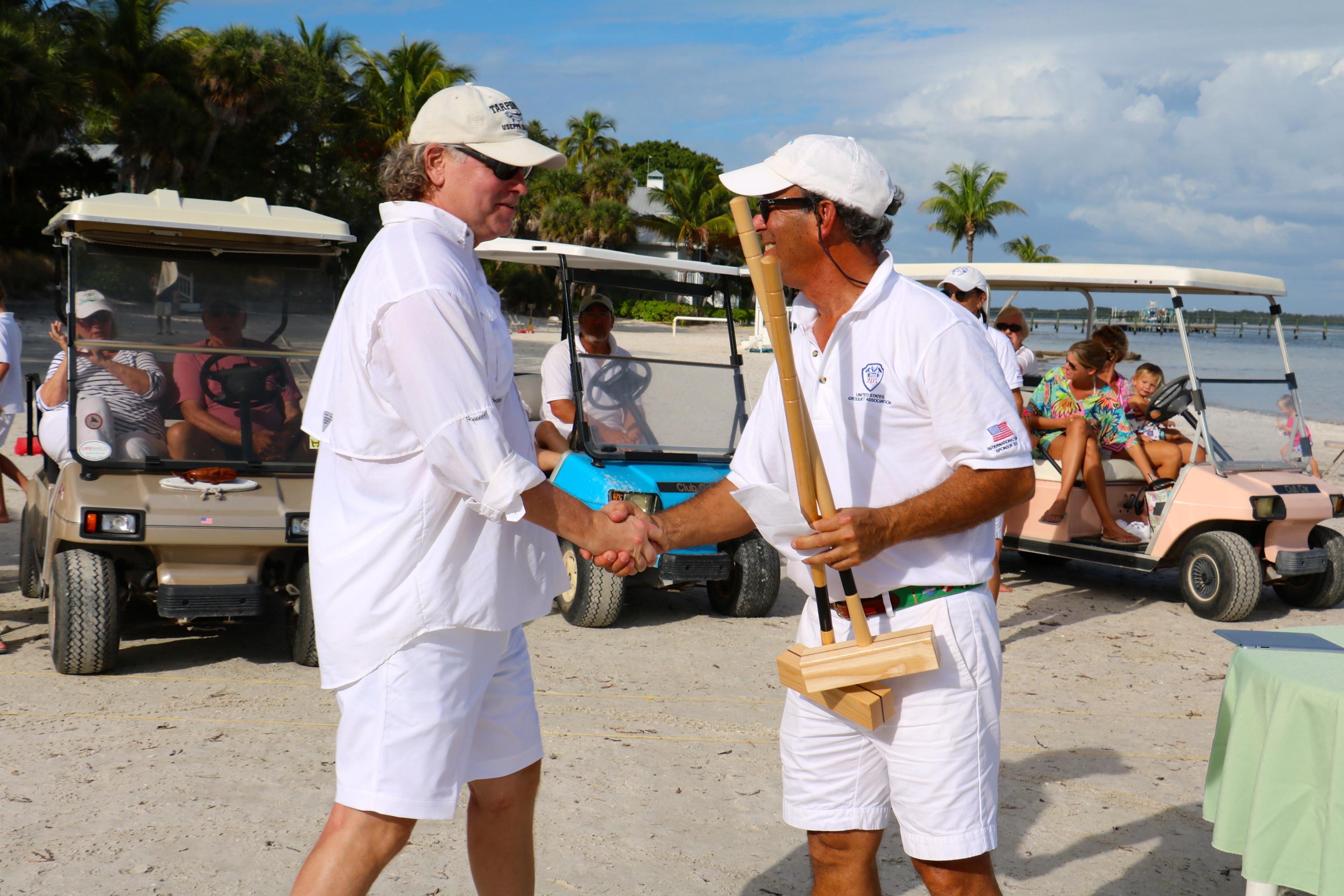 The final croquet match pitted perennial nine wicket champion Mike Zuro and his novice partner player Chris Weaver against seasoned player Tyler Sipprelle and his beginner partner Sam Pastor. Zuro and Weaver won that game, but everyone who played on the beach during the long day, both winners and losers had a great time. That’s what croquet on Useppa is all about.