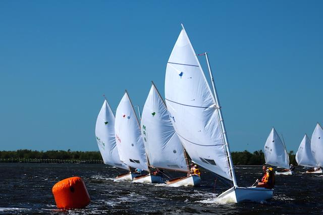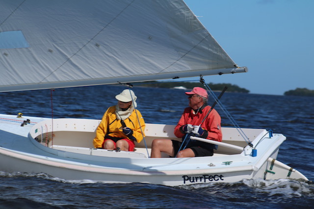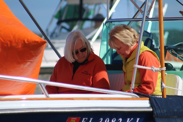Principal Race Officer (PRO) Bob Stevens the lead fleet out on the first day of sailing as the racing began in 10+ knots of breeze. All went well and the hearty sailors were rewarded with another delicious lunch at Bill’s Grille.