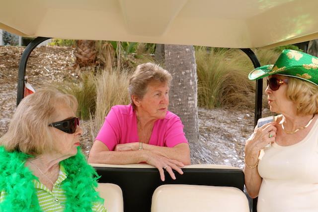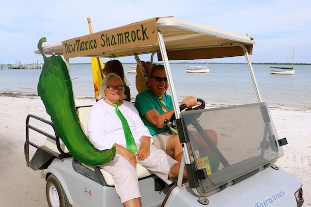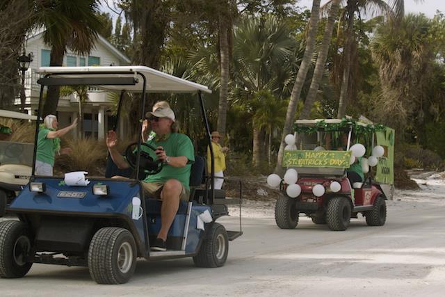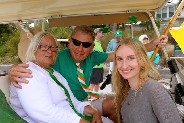 Stephan O”Kaufmann was the Ringmaster with Jan Sweeney and Aimee O’Lockhart at his side judging decorated golf carts trailing the Fire Truck along the water’s edge.