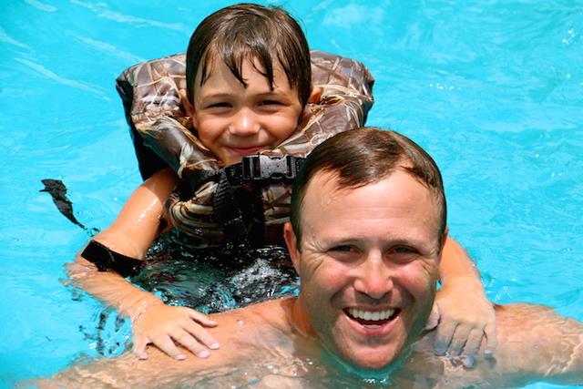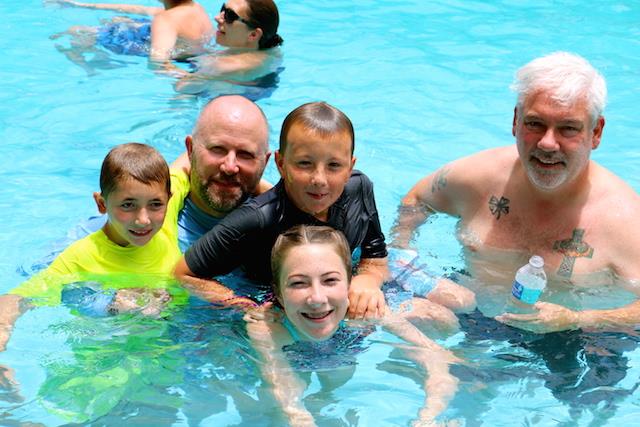 Poolside music, patio lunches, kids and grownups swimming, relaxing under the shade...