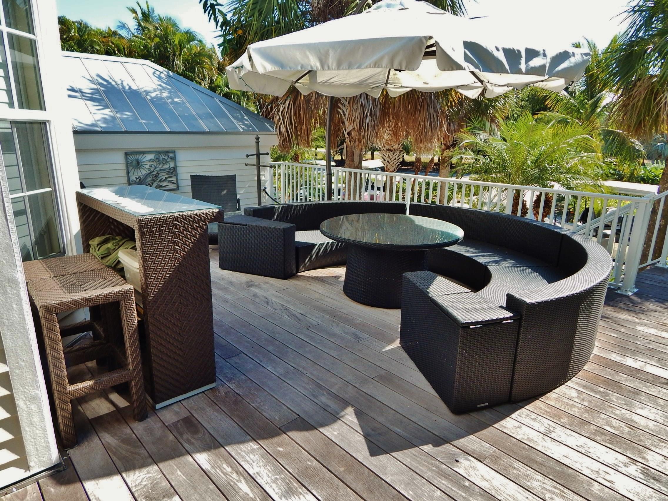 The outside deck is spacious and covered completely with Ipe hardwood. Similar to teak in look and quality, this material is low-maintenance and long-lasting without sacrificing the beautiful natural appearance of wood. There is deck-space on the south side of the cottage, perfect for grilling and lounging, as well as the north, overlooking the fantastic waterfront with Boca Grande Pass in the near distance.