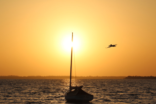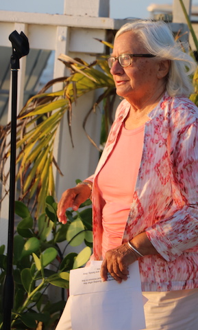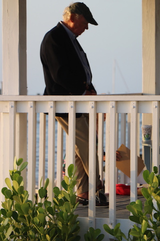 Years ago it was an Episcopal Communion Service with chairs set up in formal rows across the chess board by the pool. For the last twenty years, it has been an ecumenical gathering at the water's edge of neighbors and guests, members staying on their boats. Everyone is welcome, children lead us in the Lord's Prayer, the handshake of peace goes around, and we all share in communion.