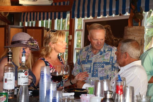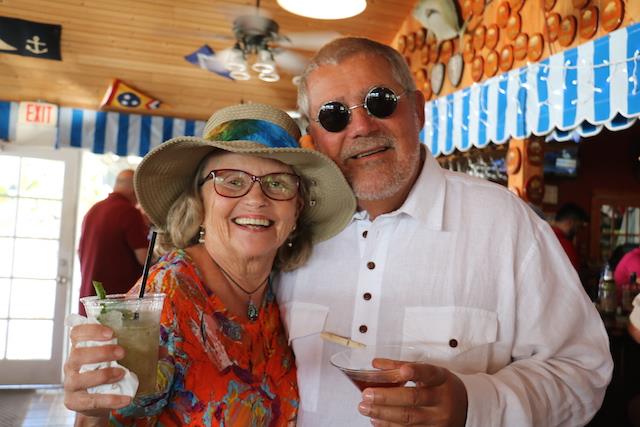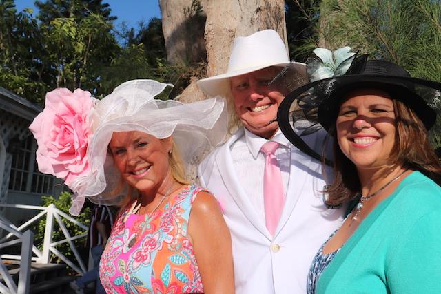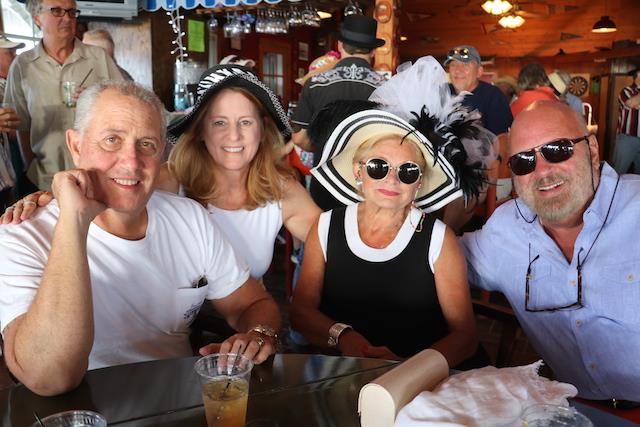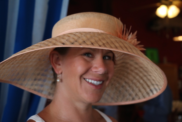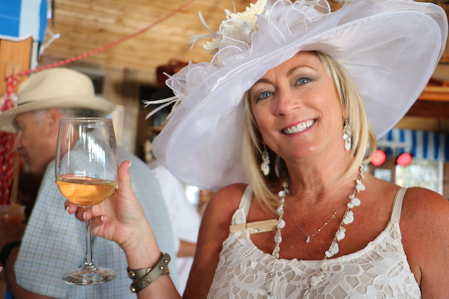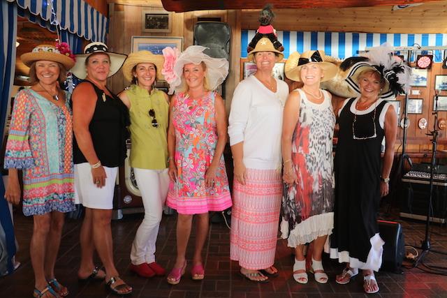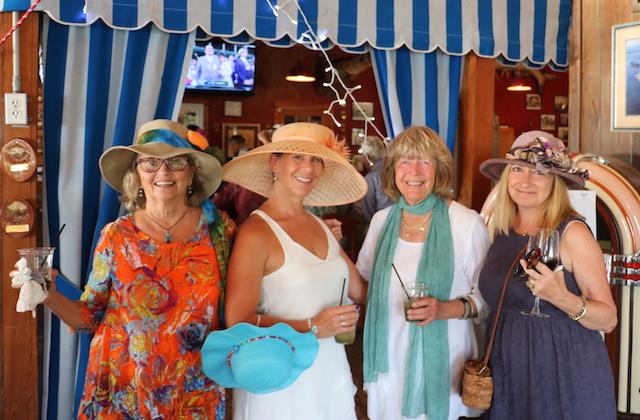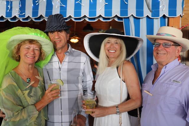 The Tarpon Bar was full with half as many hats as people. Mint Juleps were the most popular drink. There were cheers as horses ran the muddy Kentucky Derby track. Prizes were awarded. An old-fashioned pig roast was the perfect dinner. Cheers determined the winning festive chapeaux.
