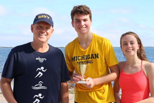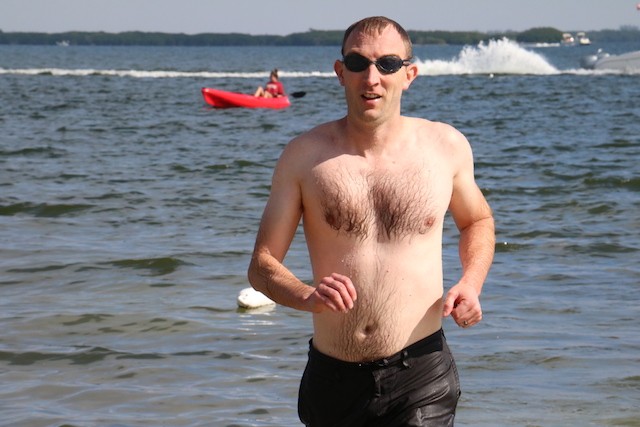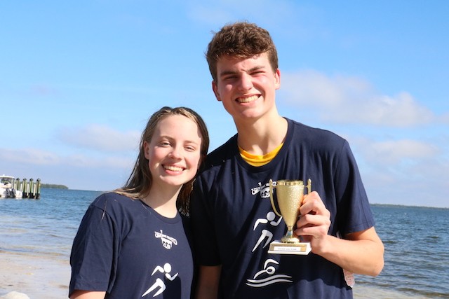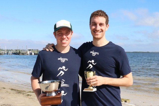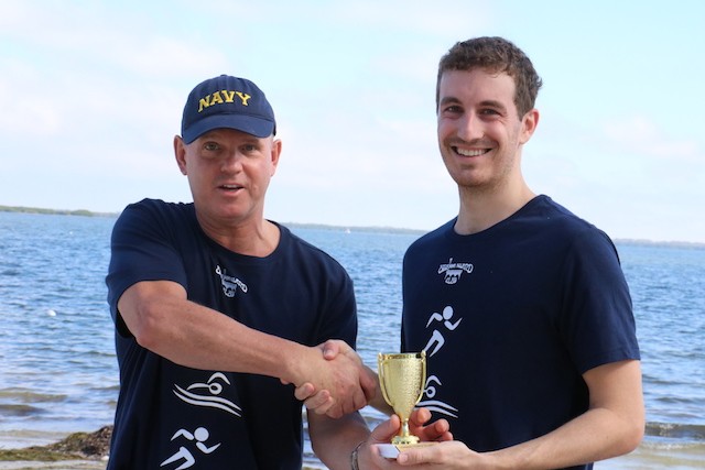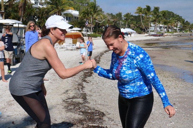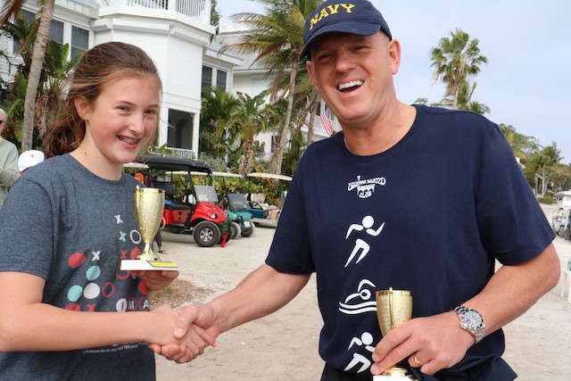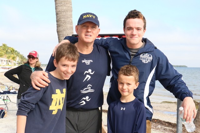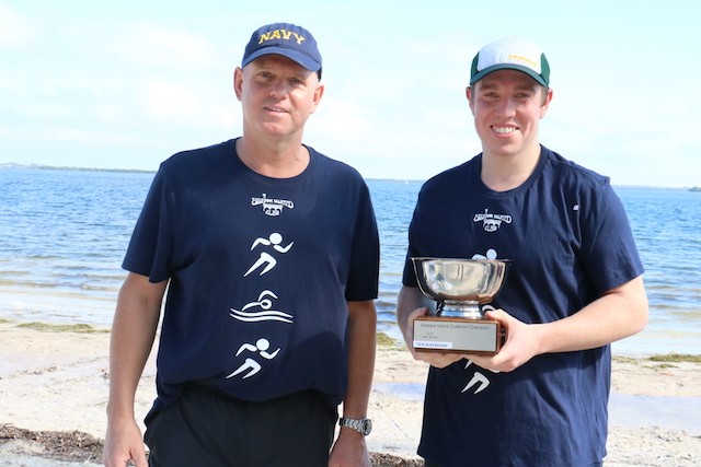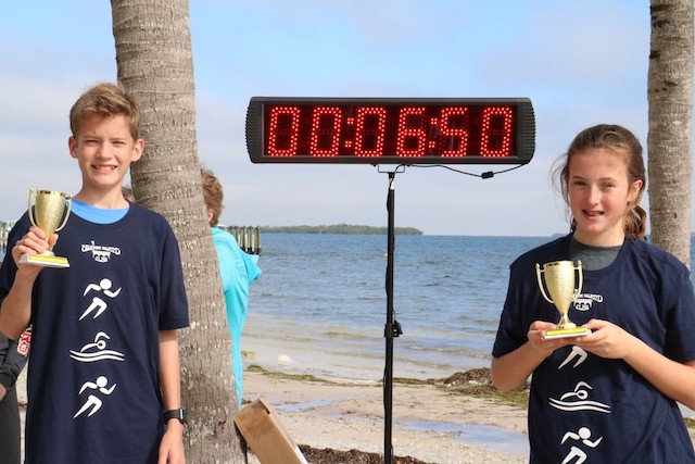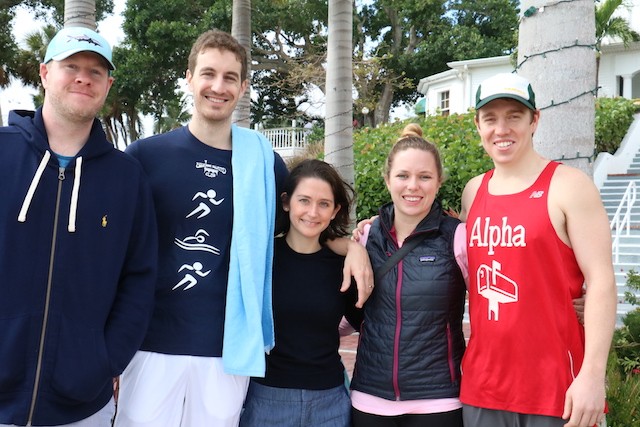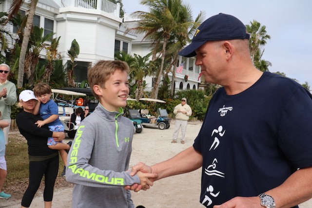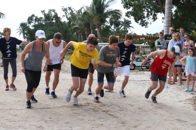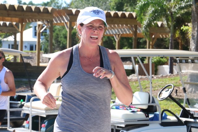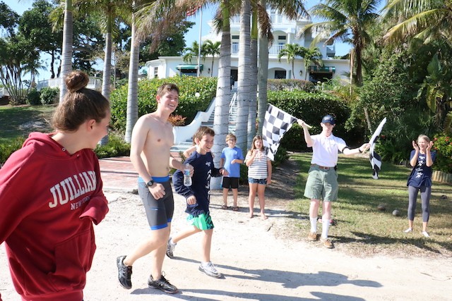 2017 Annual Useppa Duathlon: Organized by Simon Bound - Photographs by UseppaGin - The third annual Useppa Duathlon took place on December 28th. Helen won a hotly contested kids’ 500m, Maxwell was second, and Greg was third. The main event was the usual 2k run, 500m swim and 2k run. A strong northerly wind caused the swim to be shorted somewhat by the race committee. A few notable absences this year made predictions difficult. Two time champion Alex Bound was away swim training in CT with brother Jack, and the always competitive Siprelle sons were absent. However, a tight race ensured.