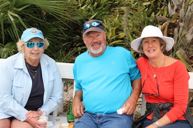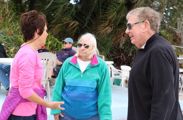 Cold Weather, Warm Smiles - comments and photos by UseppaGin - The weather was too cold for sailing. Only two Sandpipers braved the gray skies and low tides last Saturday, Feb 3rd. But by lunch time, hamburgers on the beach and lunch on the Collier Inn Patio were a perfect match for warming temperatures.