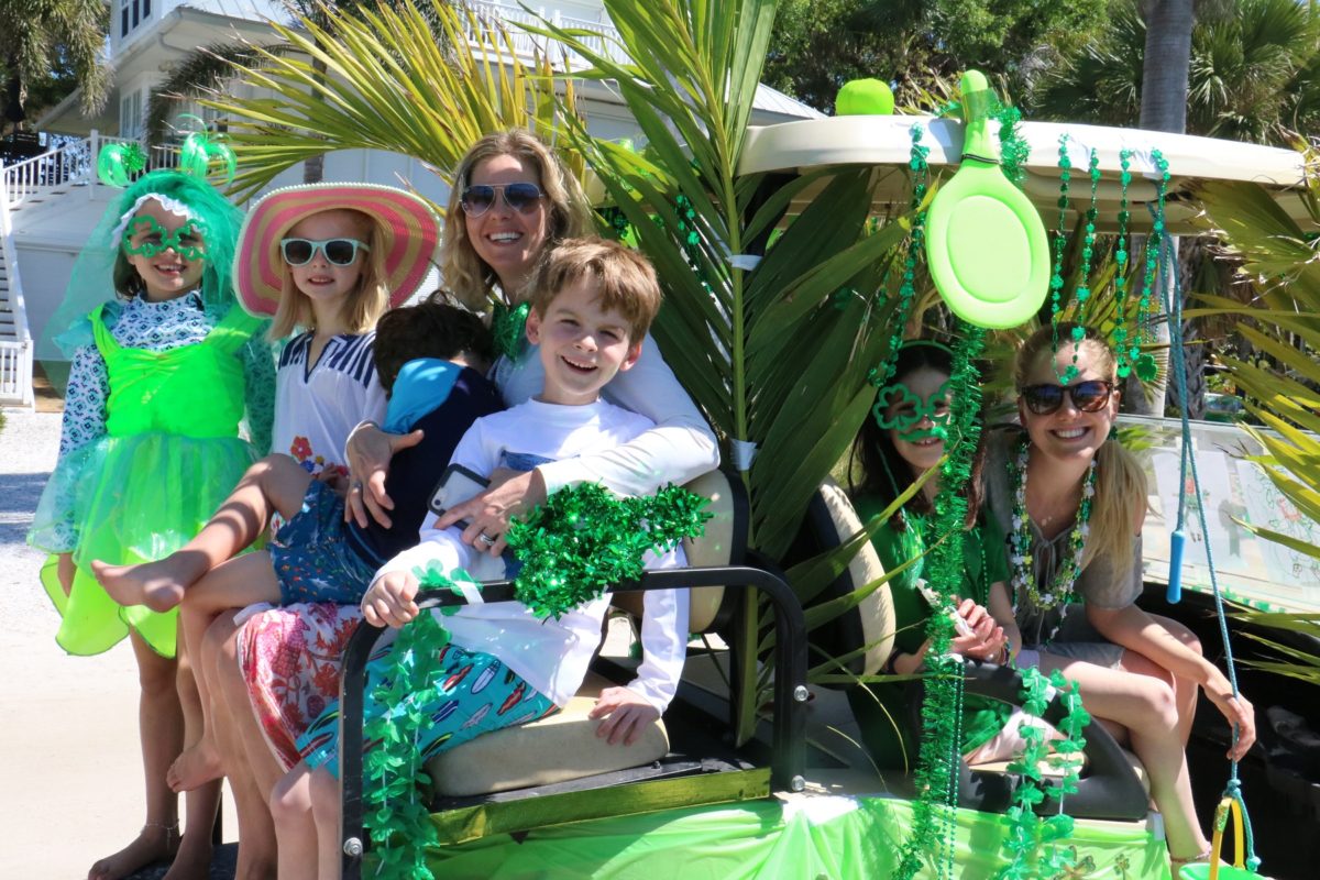 St. Patrick’s Day – Thoughts and photos by UseppaGin – ‘Twas another grand Saint Patrick’s Day Parade on Useppa. The wearing of the green on March 17th is an island tradition. For one family, it’s the fourth generation parading up and down the beach. Prizes, applause and accolades were awarded to all the participants aboard decorated golf carts. Green beer awaited all at the Tarpon, and for one day, everyone on Useppa was Irish.