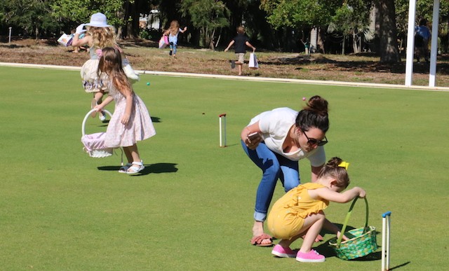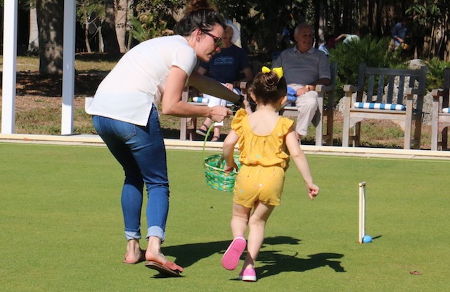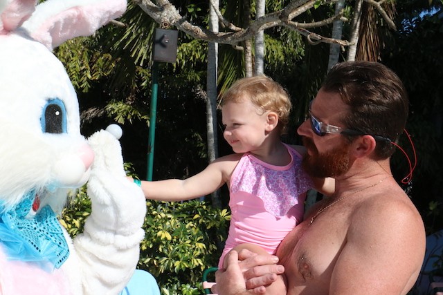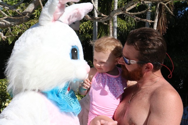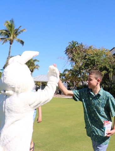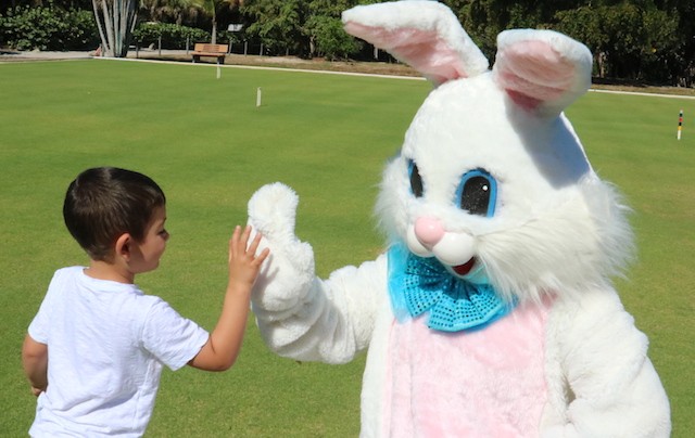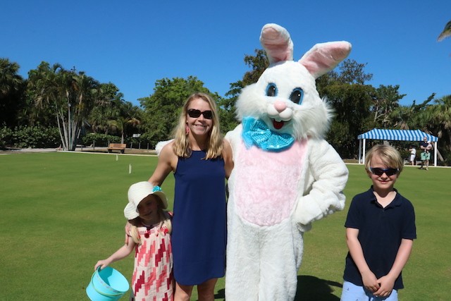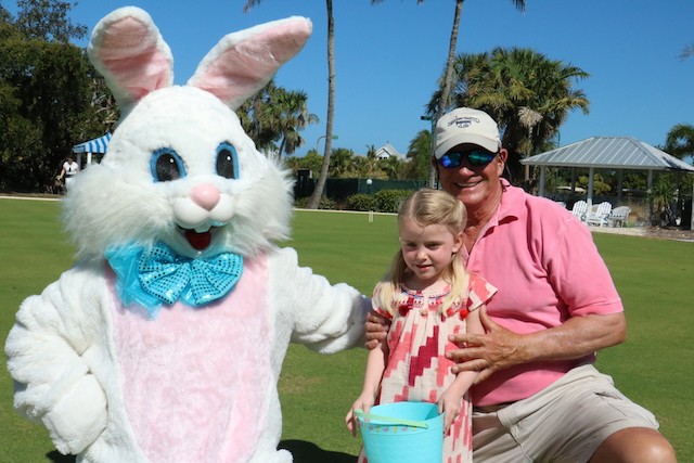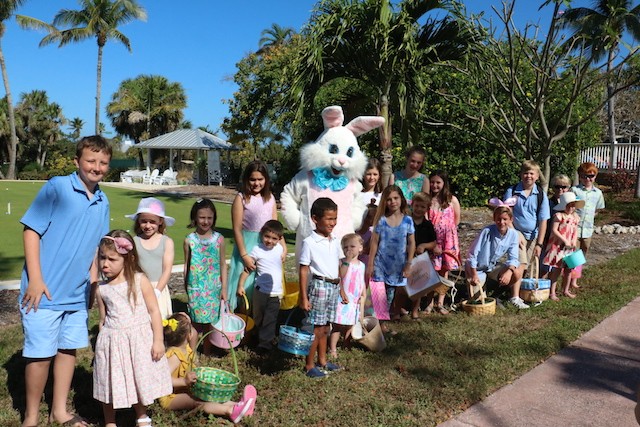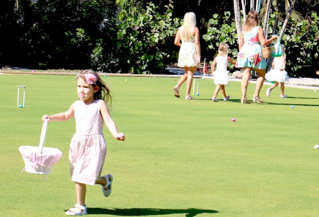 Bunnies and Eggs on Useppa - Thoughts and Pictures by UseppaGin - A little toddler was playing in the Collier pool when the Easter Bunny walked by on its way for the Useppa Easter Egg Hunt. The tiny girl had never seen anything like the big white rabbit, and at first, she was a bit hesitant. But the Bunny stopped and gently reached out. Soon the two were friends and snuggled into each other in a hug. Easter on Useppa is like that. Bunches of kids chased each other looking for eggs. The smallest children found theirs on the croquet lawn. The older kids went further down the hill. The Bunny smiled for pictures with everyone. Something about being on an island brings out the best in all of us.