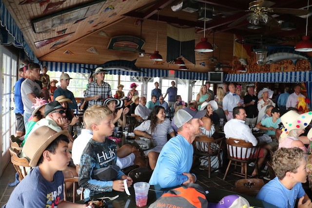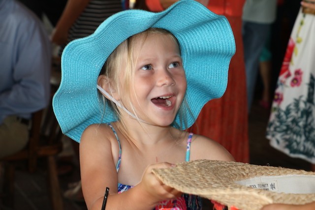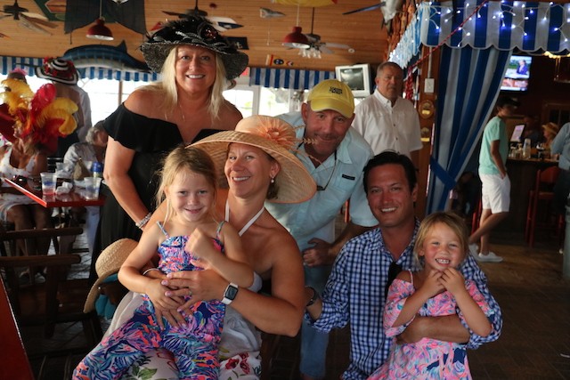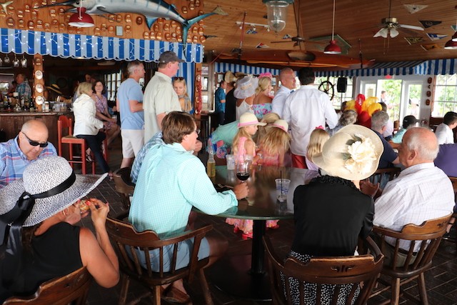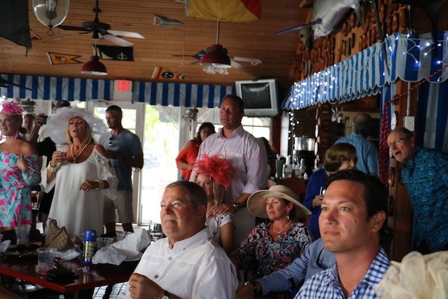 Justifiably a Good Time - Words and pictures by UseppaGin - Derby Day on Useppa has become a tradition. Fashionable hats on beautiful women, dapper gentlemen, and mischievous children fill the Tarpon Bar to watch the Kentucky Derby. A prize is awarded for the most beautiful hat and a winning raffle ticket drawn. The summer season on Useppa has officially begun.