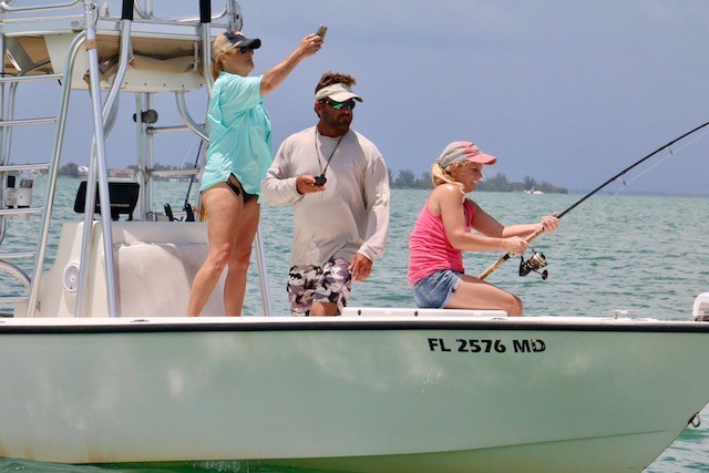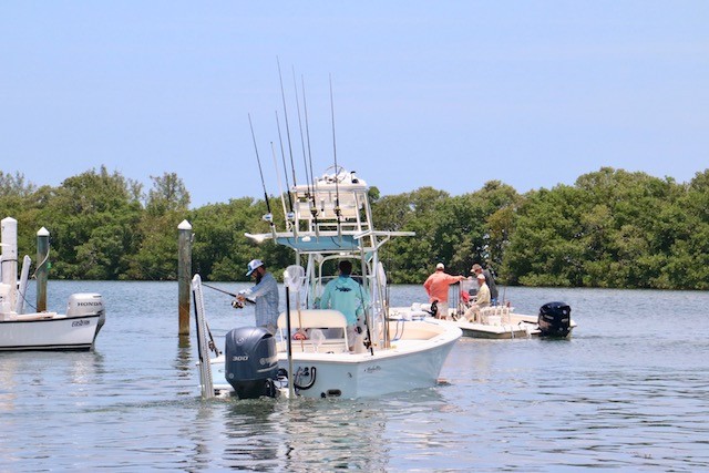 Useppa's 2018 Izaak Walton Tournament Day #1 - Pictures by Rusty Chinnis and UseppaGin, Thoughts by UseppaGin - For 126 years people on Useppa Island have fished for the Silver King, and the tradition continued in a two-day Izaak Walton Tournament June 1st and 2nd. On Friday afternoon, anglers and guides caught and released seventeen Tarpon. At 7:30 the fishermen and their families shared stories in the aptly named Tarpon Bar, listened to the music of Islander and fisherman Pat Leach, and enjoyed a delicious sunset dinner. In a few moments of quiet, founders of Captains for Clean Water, guides Captain Chris Wittman and Daniel Andrews, spoke about the progress they and others are making locally and in Washington educating people of all ages about the importance of restoring and protecting marine eco systems. On Useppa, all ages proudly wear Captains for Clean water hats. It’s a cause we all support.