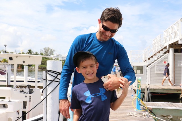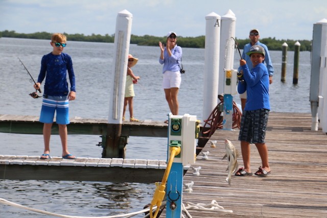 Captain Eddie measured and released the fish. Miss Lisa helped recorded the data. Kyle, graduate of Kids Fishing Tournaments and one of the best, if not the best, fisherman on the island, helped each young angler. The kids helped each other. Parents helped only when necessary. Catch and release fishing is a Useppa tradition. Passing it on to each new generation of anglers is part of that custom.
