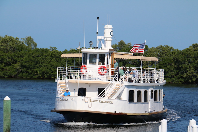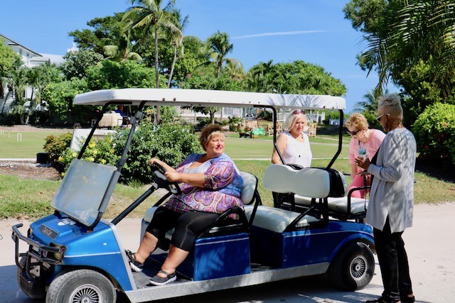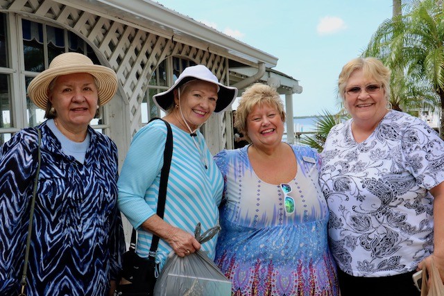 New Friends, The Lady Chadwick, The Collier Inn, & the Barbara Sumwalt Museum - words and photos by UseppaGin - The Lady Chadwick was back in service after an eight-week boat yard project. The Barbara Sumwalt Museum was still undergoing a remodel, but open for this unique group. The Collier Inn hosted a special buffet luncheon. The Island pool and patio area were closed and blocked off for reconstruction. The logistics of getting from the Collier to the Museum confusing and circuitous. BUT…. The Sandollars of Naples were welcomed by all. Our visitors and their good humor made the day fun for everyone. It was like the first day of school – high levels of enthusiasm, and if something went wrong, everyone just grinned and readjusted. Golf carts and their drivers were requisitioned to avoid the added distance and stairs between the Collier Inn and the Museum. Men and women who needed extra help maneuvering smiled cheerfully and accepted a ride. Everyone was patient and in a good mood. After a long hot summer with few visitors, Red Tide, and reconstruction; the first guests of a new season were welcomed by all of us on Useppa. According to its website, Sandollars of Naples was formed to provide a social and informative setting in which lasting friendships can be built and nurtured. When the Sandollars re-boarded the Lady Chadwick to head back to Sanibel, we waved good-bye to each other. New friendships had begun begun.