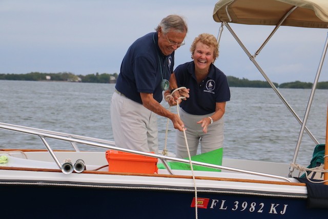 Ragtime Skippered by Kurt Stocker with Crew Tony Colgan Wins 2019 McMahon Regatta - Words by UseppaGin, Photos by UseppaGin and Alexander Poplawski - Morning and afternoon races, Bill’s Grille for lunch, dinner and awards at the Tarpon Bar were all part of the 2019 McMahon Regatta. Longtime sailors Kurt Stocker and Tony Colgan were the winners. Skipper Ed King and crew Kim Lockhart on Coot took 2nd place. The Regatta is named in honor of Useppa’s first Yacht Club Commodore Jack McMahon, and it determines the Island’s Marshall Catboat Championship. Sailing on Useppa is open to all. There are no membership dues. The Useppa Island Yacht Club is one more example of island good-natured fun and fellowship.