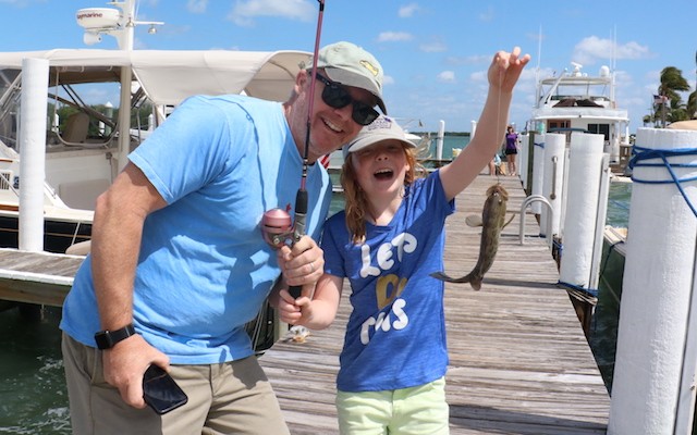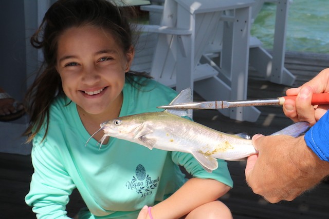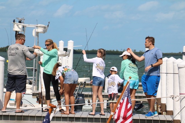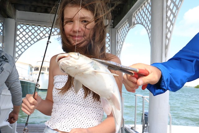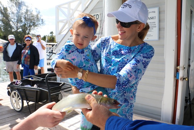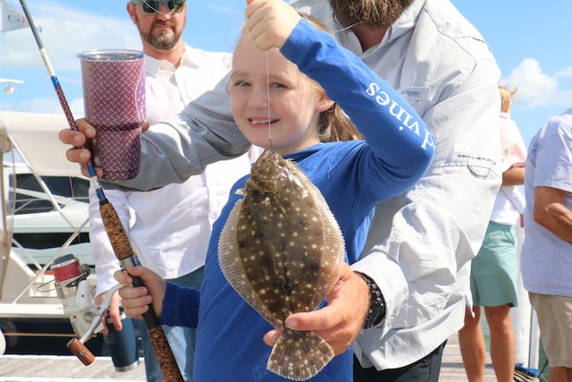 The 2019 Izaak Walton Easter Useppa Kids Fishing Tournament - Photos and thoughts by UseppaGin - A Record Number of Fish, High Winds, and Determination describe the Easter 2019 Izaak Walton Useppa Kids Fishing Tournament. Flounder, Redfish, and Catfish were reeled in by boys and girls despite the weather. Captain Ken was kept busy taking fish off the hook, measuring each one, and talking to the angler before tossing the squiggly catch back into the water. Miss Lisa kept records and after one hour of fun, prizes and Blue Ribbons were awarded. Another great day on the dock. The tradition of family fishing continues.