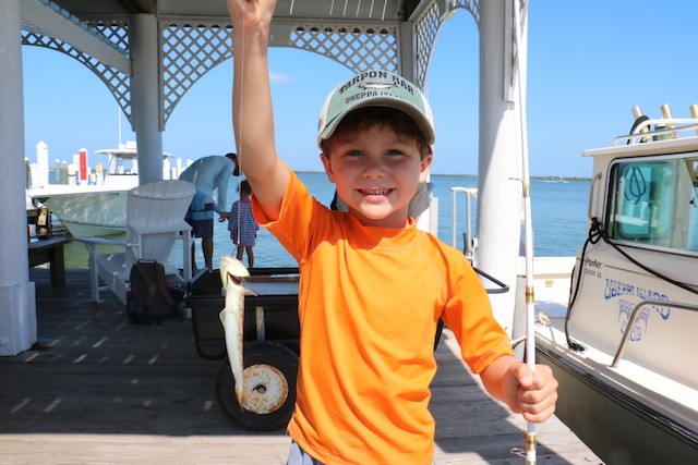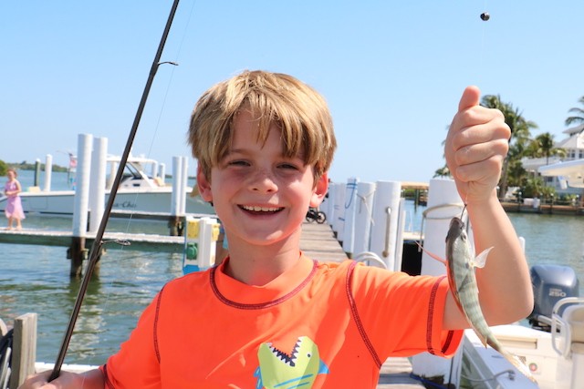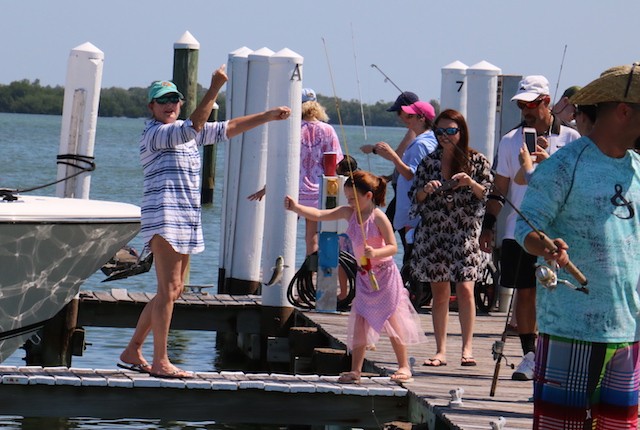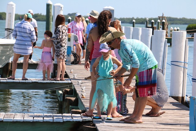 Memorial Day, Kids, and the Fish are Biting - Thoughts and Pictures by UseppaGin - The 4th generation of one family and new families gathered together on the Marina docks to reel in their catches. Captain Ken administered the Fisherman’s Oath to kids raising their right hands, raising their left legs. They promised to help their fellow fishermen whenever needed and to catch and release their fish. For one hour nothing but fun on Useppa.