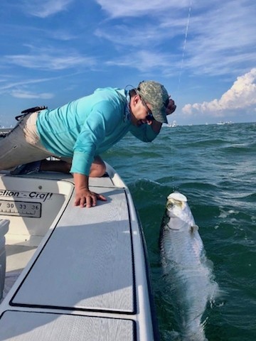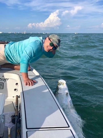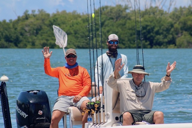 Jason Duke and Ben Levene with Captain Ozzie Lessinger Win Useppa’s 2019 Izaak Walton Tarpon Tournament - Thoughts and Photos by UseppaGin - It was a hard fought victory. Twenty-four Silver King were caught on Friday and six more on Saturday. Fifteen teams competed for the right to add their names to those on a silver trophy over 110 years old. Finally, it was the team with six fish who won the Championship. Captain Ozzie Lessinger and anglers Jason Duke and Ben Levene were the victors in this year’s Useppa Izaak Walton Tarpon Tournament. Dan Stickley and Justin Dewitt fishing with Captain Mike Slattery came in second with five Tarpon, and the father and son team of Richard and Bruce Wendorf with Captain Ryan Klase finished third with four. Two days on the water, cocktails and food at the Island’s Tarpon Bar, fishermen, their families, a hard working staff… the tradition of Useppa Tarpon fishing is still an integral and vibrant part of island life. (Thank you to Ben Levene, Donald Beckstead and Rich Morris for their pictures. Thank you to Andee Grosnick Wilson for registration help and score keeping, and a thank you to Rogan White for taking me out on the water to shoot pictures.)