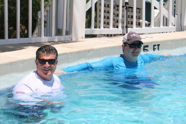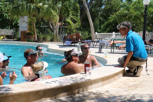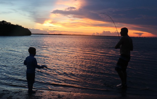 Hot Weather, Warm Friendships - Words and Pictures by UseppaGin - Hot weather, sunset sky paintings, and warm friendships describe July on Useppa. A mother and father with two little children play on the beach and fish for dinner. Families plan a Sunday lunch and an afternoon in the pool. Old friends enjoy one pina colada and just one more. A favorite Island couple revisit. All of this describes lazy summer life on Useppa.