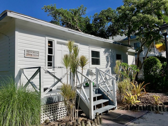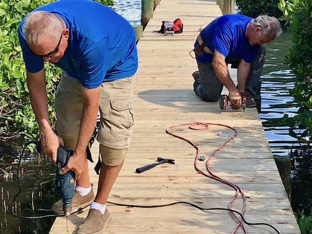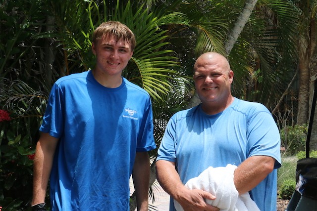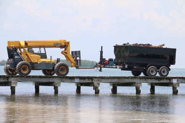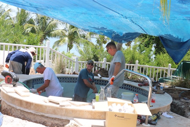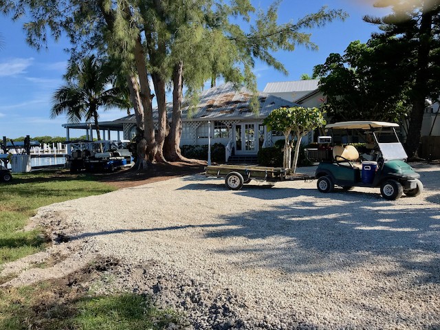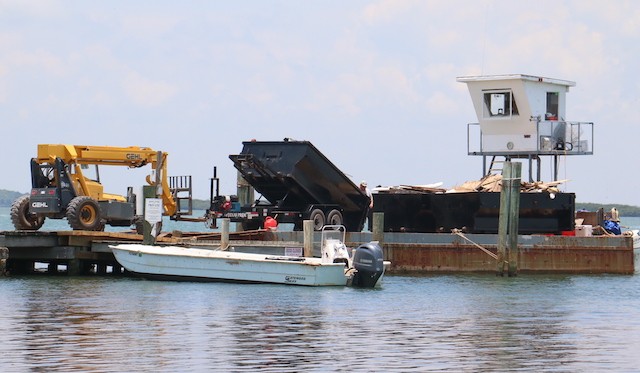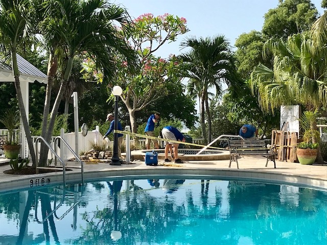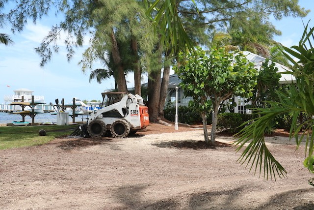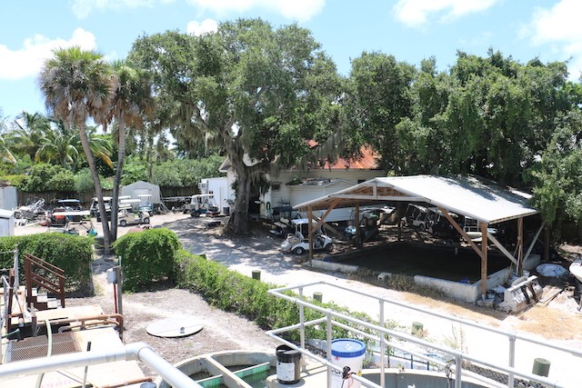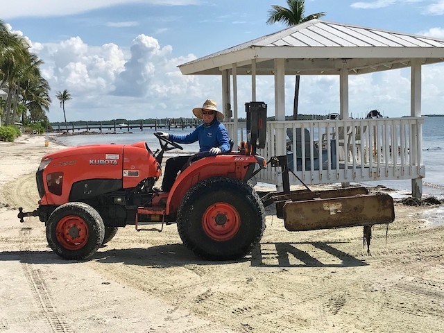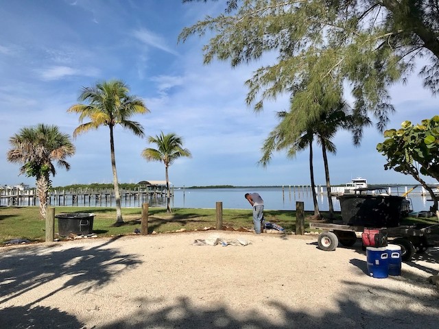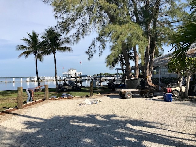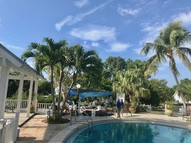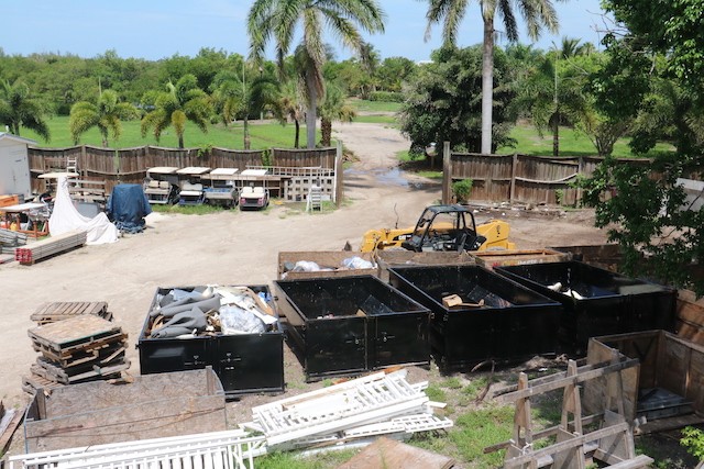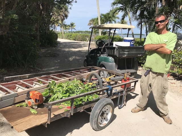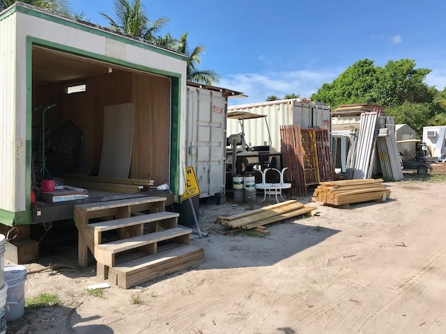 While Nobody's Looking, Summer at the Useppa Service Department - Words and pictures by UseppaGin - Most resident Islanders are away during the summer months. Local Islanders boat over on weekends. But while Useppans are away, caretaking never ends. In fact so much has been going on that pictures are in order. The Reception Center and Fitness Center have been painted. Landscaping has been working from one end of the island to the other removing palm fronds, getting rid of coconuts a.k.a. Hurricane Missiles, and removing debris. A golf cart parking area is now next to the Tarpon Bar. Work was done on the Spa. All the water lift stations are being serviced and repaired, and pipes are being mapped. Eleven large metal containers in the Service Yard allow for removal of construction debris. Electrical work and replacements for the RO plant are being installed and there will be major upgrades to the electrical system. A big Useppa thank you to all the men and women making this happen.