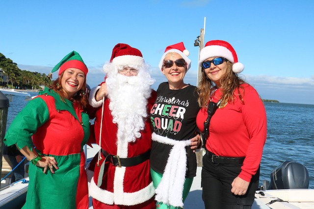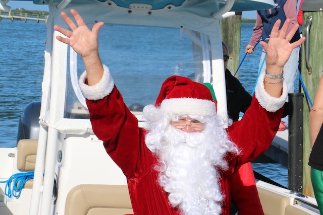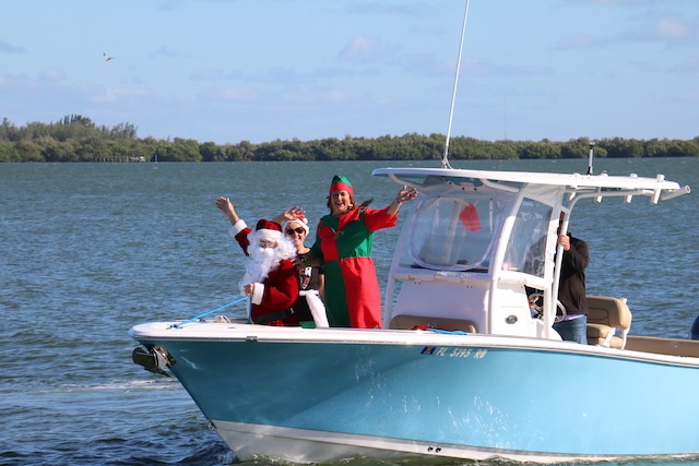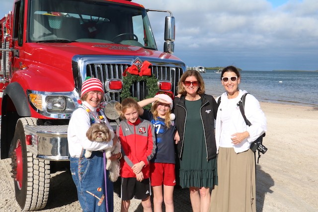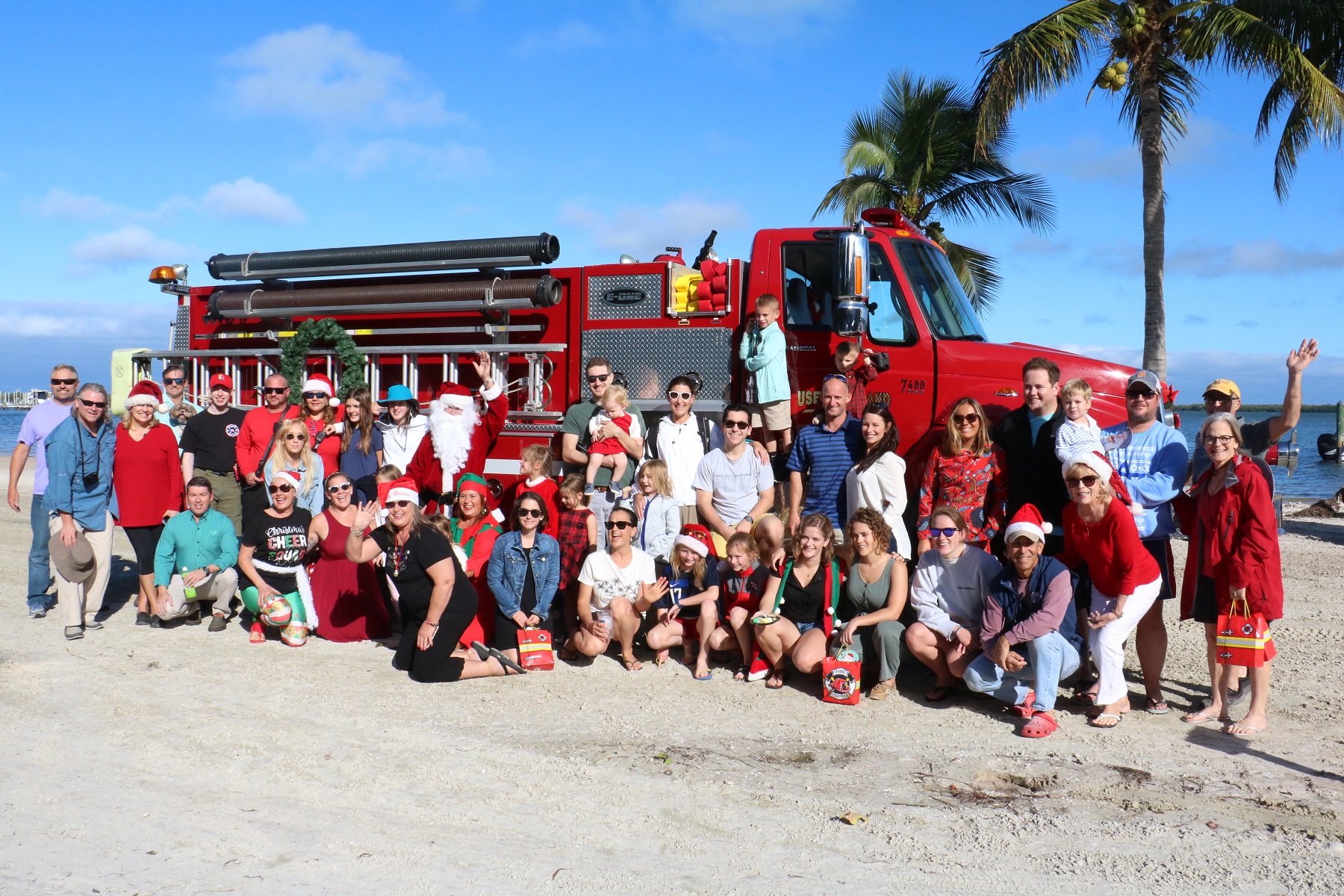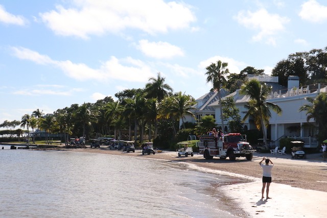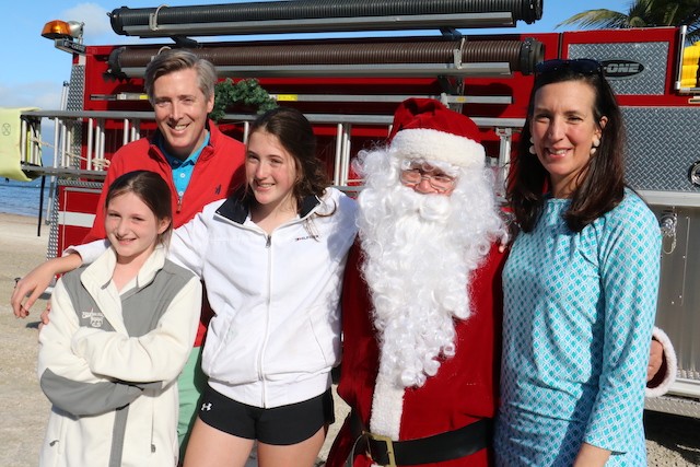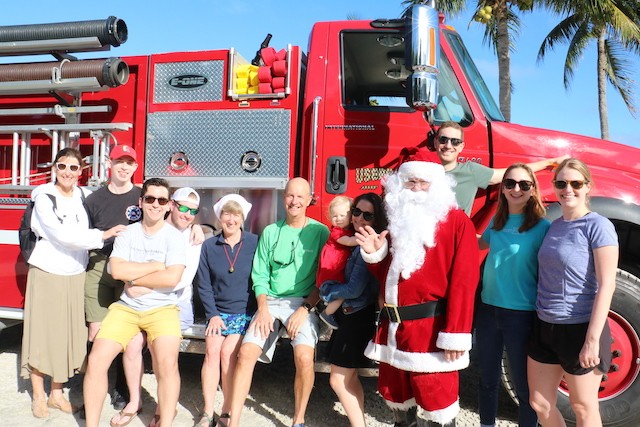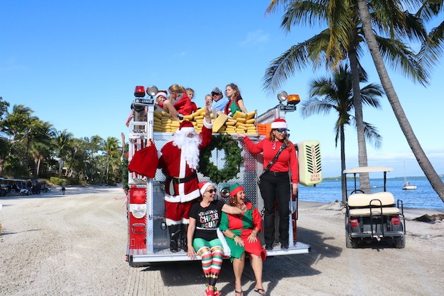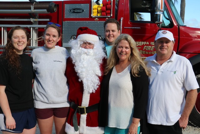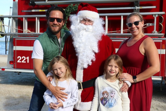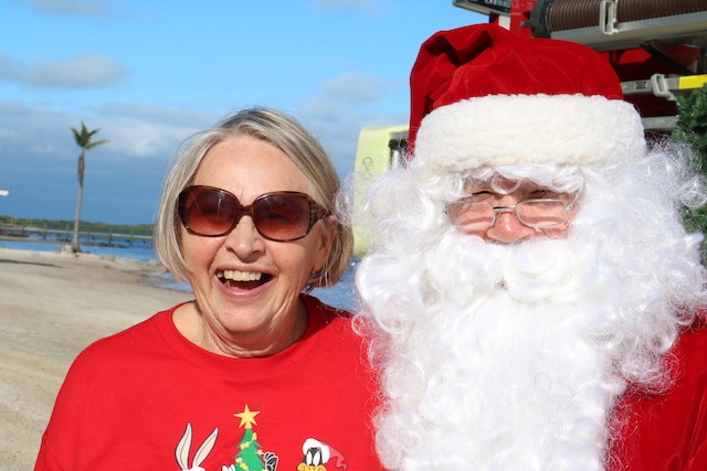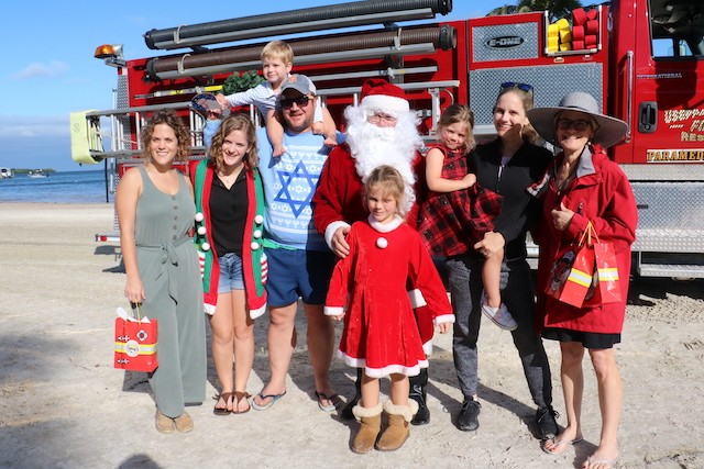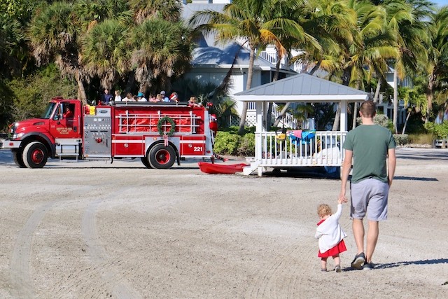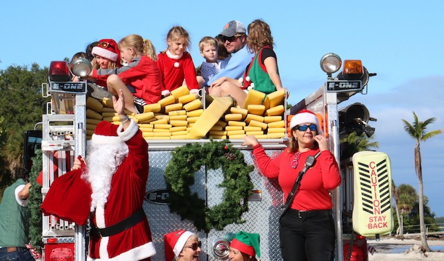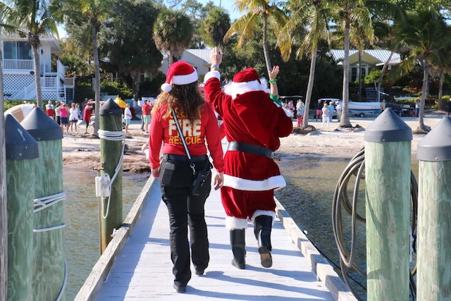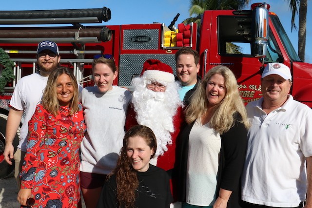 Ho!Ho!Ho! Santa Visits Useppa - Thoughts and Pictures by UseppaGin - T’was the middle of the afternoon when Santa arrived on the island. He left the reindeer on Pine Island. He needed his yearly visit to Useppa to see his young friends and ride the Fire Truck. Sleighs are okay for an overnight job of delivering presents around the world, but a chance to sit on the beach for a bit… it’s just the break Santa needs. Thank you to the Useppa Fire Department, Chief Maria and Chief Chris for making it happen.