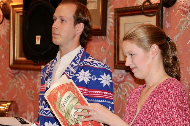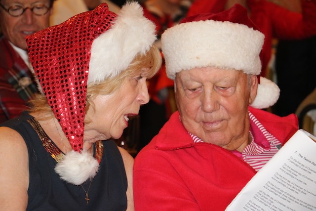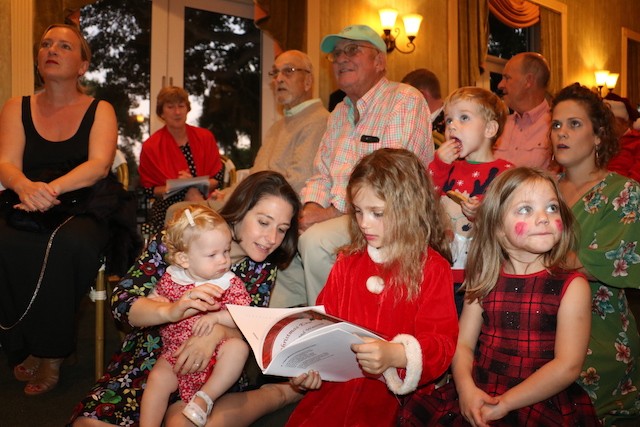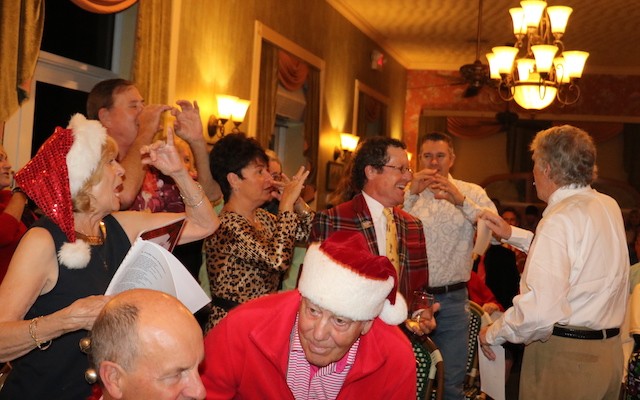 Caroling on Christmas Eve, A Useppa Tradition - Thoughts and pictures by UseppaGin - On Christmas Eve families and friends gather together in the old Collier Inn. Longtime homeowner Steve Kaufman welcomes everyone, and the evening begins. Tor Carlson and his cousin Maggie Merrill grew up visiting Useppa. Once it was their grandfather Paul F. Miller who led the carols. Now they are the ones who get even the shiest Islander singing. They are the ones who bring our littlest ones up front to sing “Rudolph the Red Nosed Reindeer.” Finally, Steve Kaufman lifts his baton and “The Twelve Days of Christmas” begin. Some people are geese a laying, calling birds, maids a milking, swans a swimming, and of course, the jubilant five golden rings. It is a triumphant celebration of Christmas on Useppa.
