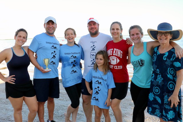 Useppa Duathlon 2019 - Words by Simon Bound with pictures by UseppaGin - The 5th Annual Duathlon took place on 27 December 2019 on the warmest day of Christmas week. 10 individual athletes and 5 teams took part in the 2k/400m/2k event, and were led home by Alex B, winning for the third time. A competitive team competition saw newlyweds Matt E and Mary-Paton D take line honors. All proceeds went to Useppa Fire and Rescue. First Place Winner - Alex B 24.12, Second Place - Jack B 24.33, First female - Payton Carol Y 30.20, First Team - Matt E and Mary-Paton E., Kids Race Winner – Masie S