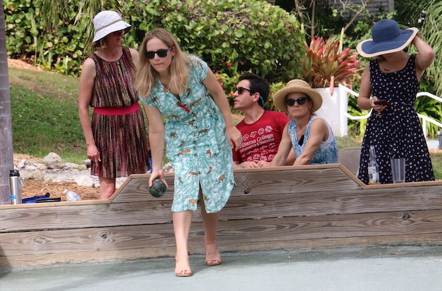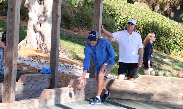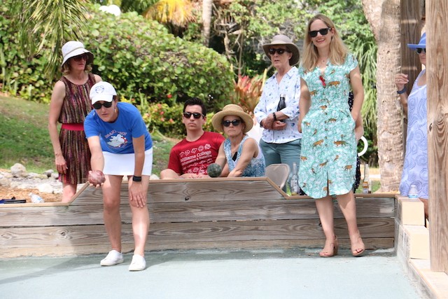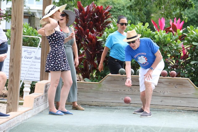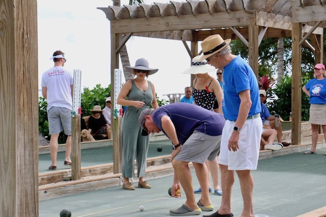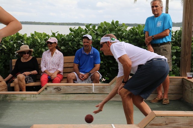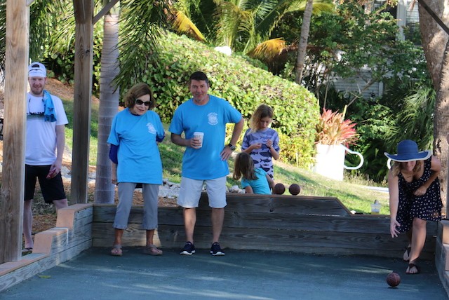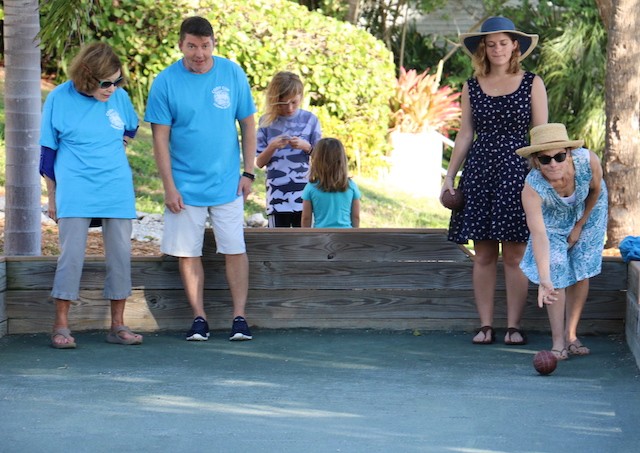 Bocce Players Shuffle To Victory - Words and Pictures by UseppaGin - The Bocce Tournament is played in honor and in memory of Useppa Island husband, father, and grandfather Cody Davis. Cody was a master of self-deprecation, common sense, wisdom, and mischievousness. Competition was also part of his nature, and when he played bocce, all his character traits were part of the game. And when things went well… he did the Cody Shuffle. Winning and losing on and off the court required the right moves. His daughter young Cody taught everyone just how it should be done. In fact, the winning team wasn’t given their trophy until they showed their moves dancing with Cody’s granddaughters.