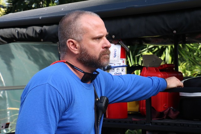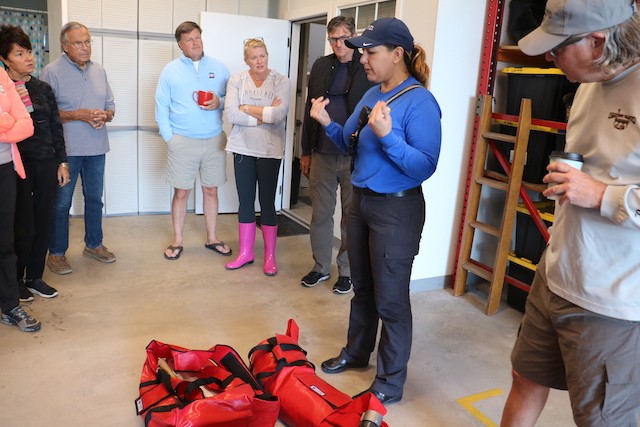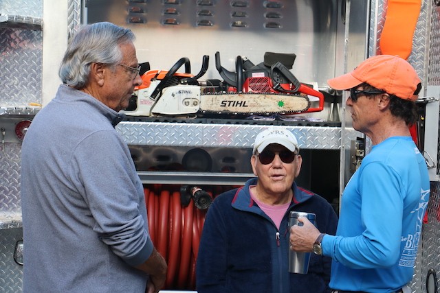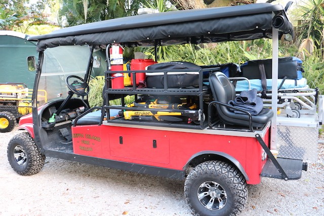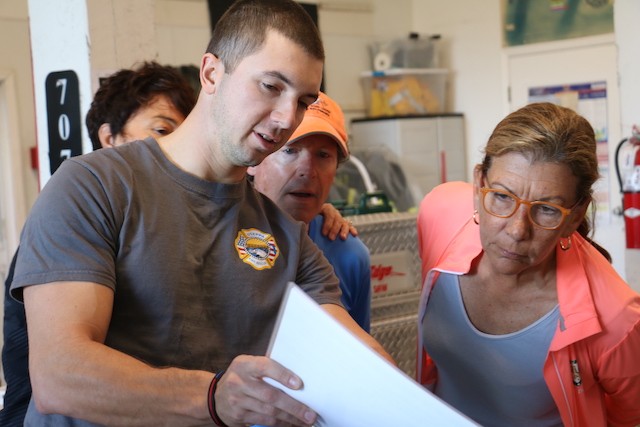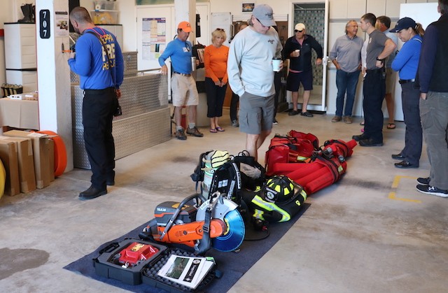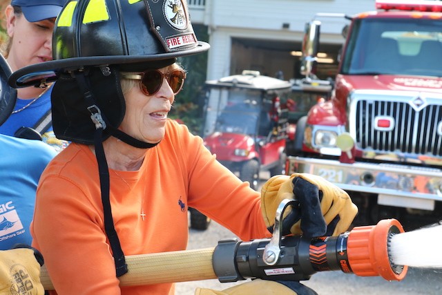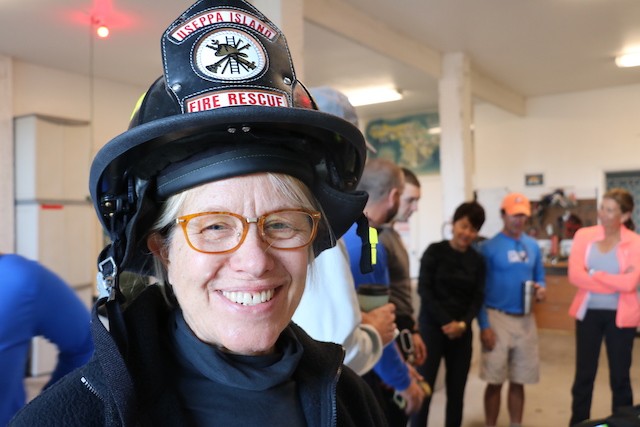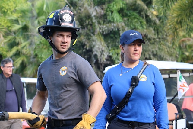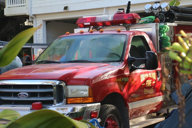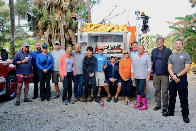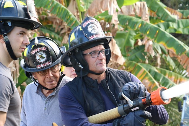 It Takes a Village To Fight a Fire - Thoughts and pictures by UseppaGin - Useppa has its own Fire Department. Chief Maria Silva and Assistant Chief Chris Wilfong working with mainland firefighters Ed Plyaka and others know the Island and its structures. They know the idiosyncrasies of its homes. They have all the necessary equipment for fire and health emergencies. But in a crisis, extra hands might be necessary, jobs shared. Knowledgeable and prepared Island residents might be needed. On Friday January 24th the first 2020 Training Session was held. Homeowners were invited to the Firehouse and showed equipment, told how it was used. Procedures were explained, and then the highpoint for many was … a chance to actually put a helmet on, use the fire truck hose. Thank you to Chief Maria, Chris and Ed for leading our first class.