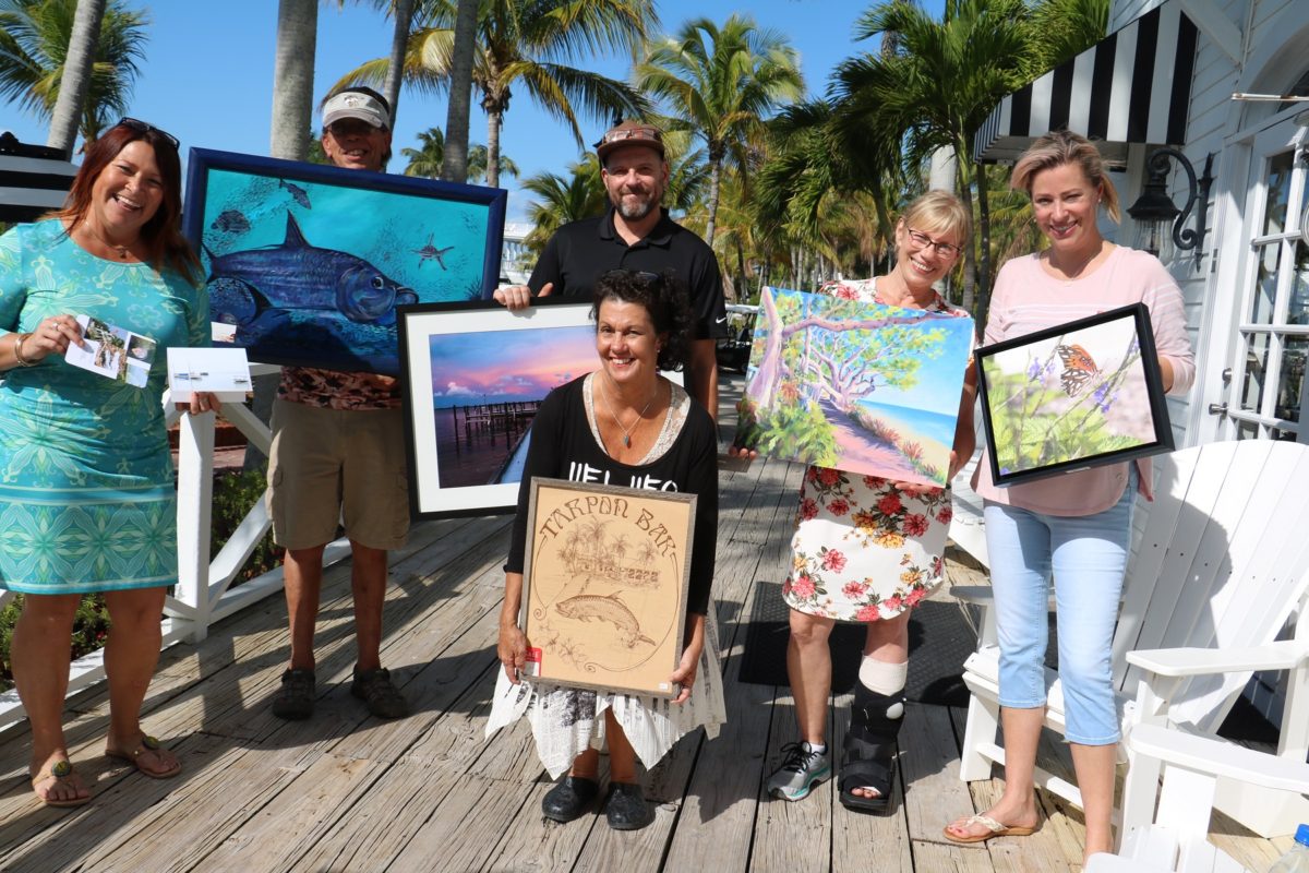 Art and Fashion on Useppa – Thoughts and pictures by UseppaGin – Artists took over the Tarpon Bar on February 15th. Sponsored by the Useppa Island Club and Useppa’s Paradise Partnership, paintings, cards, photographs, jewelry, and unique pieces of art were for sale. It was a collaboration between mainland and Useppa artists. A percentage of profits donated to the Partnership will help in the organization’s continuing work to enhance Useppa’s natural beauty. Homeowners, members and guests chose favorite pieces and also took advantage of a sale in Joseffa’s Boutique. The creativity, neighbors’ unexpected talents, breathtaking photographs, whimsical and serious pieces of art – a day to remember.