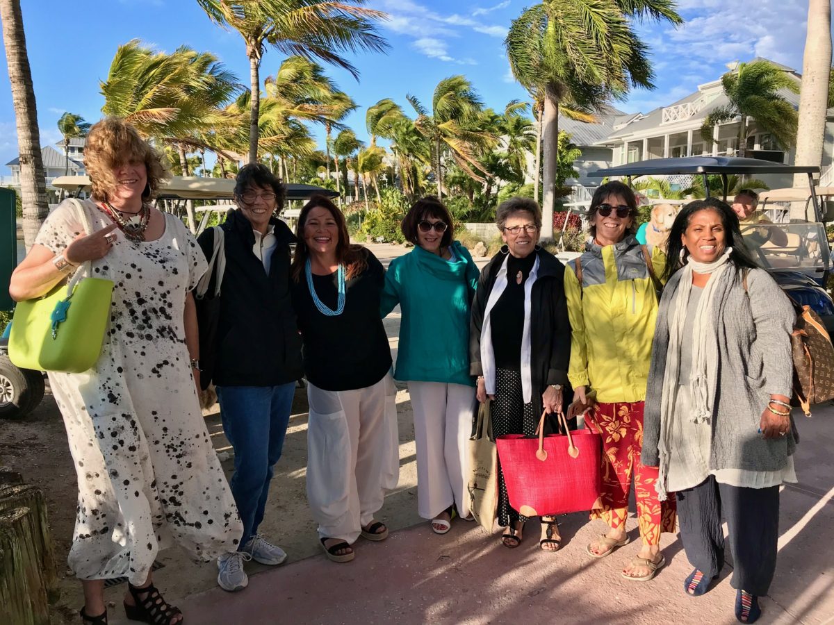 History and Style Under One Roof – Thoughts and Pictures and UseppaGin – On a windy Friday afternoon March 6th, ladies of Useppa gathered for a fashion show and party at the Barbara Sumwalt Museum. Director Rona Stage thanked everyone for all the work they do to make Useppa’s Historical Society such an integral part of island life. Then the fun began. The Art of Fashion and More in historic downtown Fort Myers brought clothes, accessories, and jewelry that both their models and Useppans showed off to good natured laughter and applause in the usually staid and serious museum. Glasses of Prosecco were raised in toast to each other and the spirits of Useppa’s past.