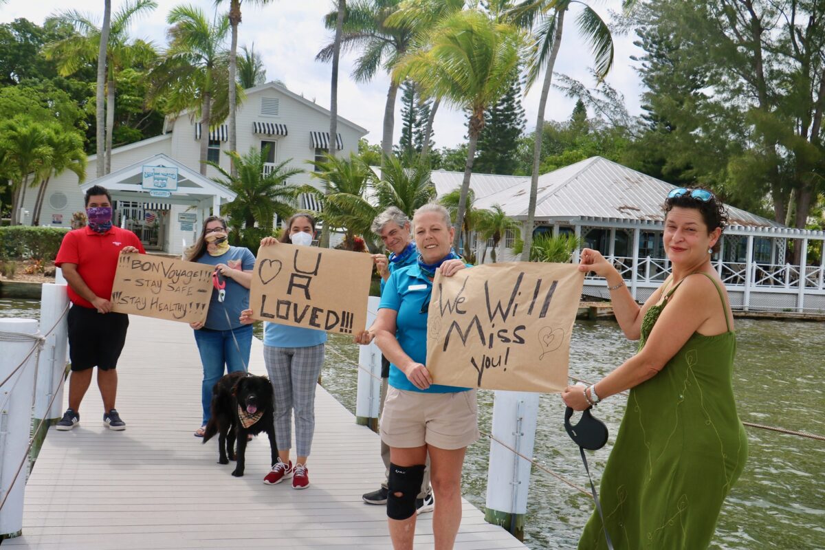 Island Time – Thoughts and pictures by UseppaGin – Families and close friends live on Useppa, visit the island. It’s that time of year to wave goodbyes to those closing their houses, heading north. It’s the time when Florida families come by boat for vacation, or for a long, summer lazy day. Wearing masks and buffs is supported, social distancing encouraged for all. The hugs in these pictures are goodbyes between trusted buddies. Useppa is an island of peace and freedom in the Pandemic but its tranquility is one to respect and treasure, not take for granted.
