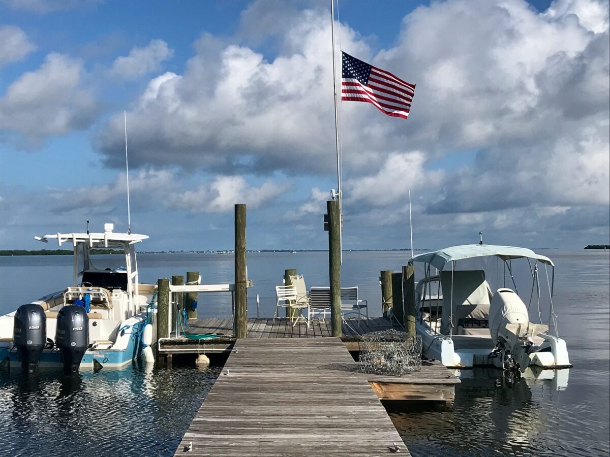 But how often do any of us appreciate the personality of each dock, the different views toward Pine Island or Cabbage Key, Cayo Costa, Boca Grande? There are flags on some docks. Lowered to half-mast in honor of Ruth Bader Ginsburg was a reminder they fly in honor of our country and the men and women who serve it. The flags stand for the United States of America.