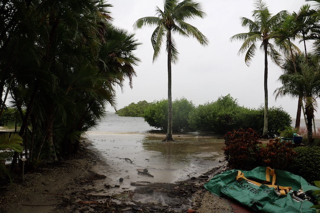 Wind and Rain from Hurricane Eta on Useppa - Pictures and Thoughts by UseppaGin - The Island is safe. Gusting winds and driving rain, branches strewn across paths, and Islanders hunkered down describes Useppa as Hurricane Eta threatens others. We are lucky. These pictures were taken during a quick afternoon ride. If Eta continues on her path, we are all right. Now at 6:30 the tide is high and will keep rising until 10:00. It’s not dangerous but it covers sections of the roads, slips onto yards. Pictures are hard to take. Use your imaginations and keep smiling. Our homes are okay. As Friday morning greets us, we see sunshine with the tide receding. Useppa survived.