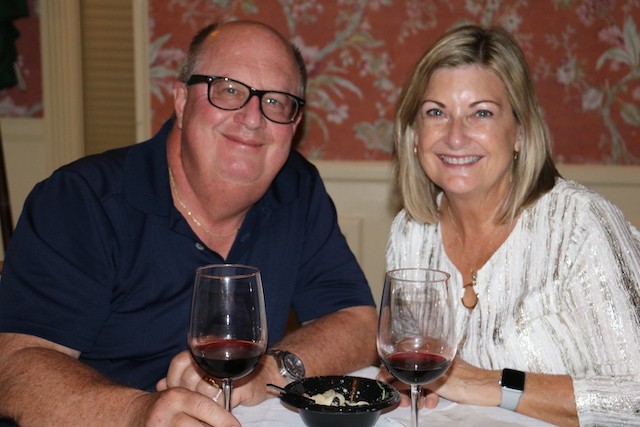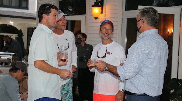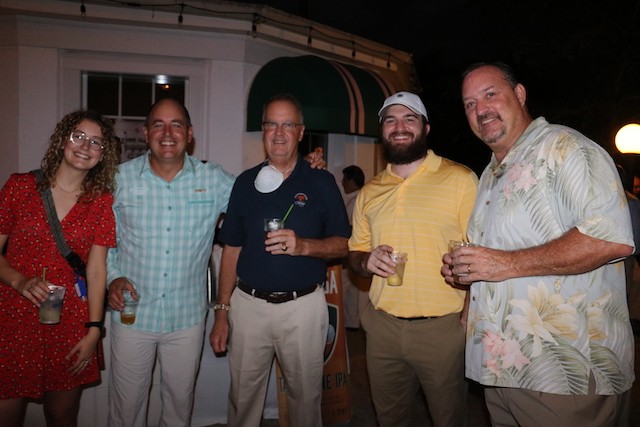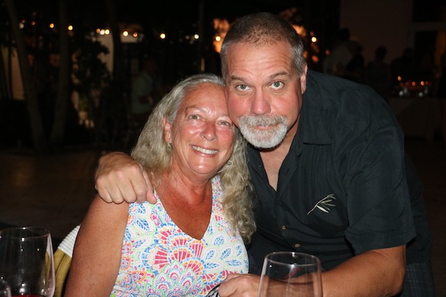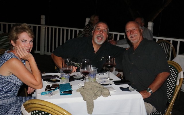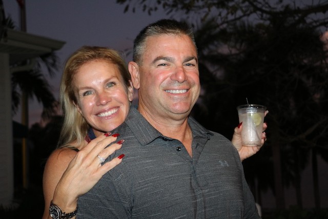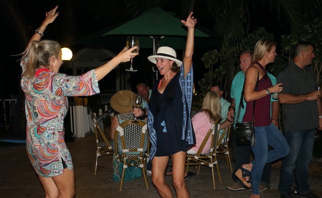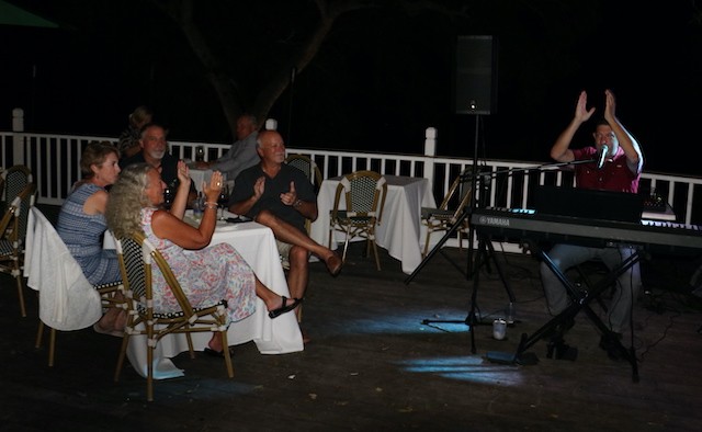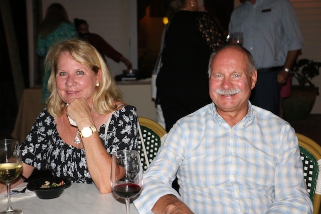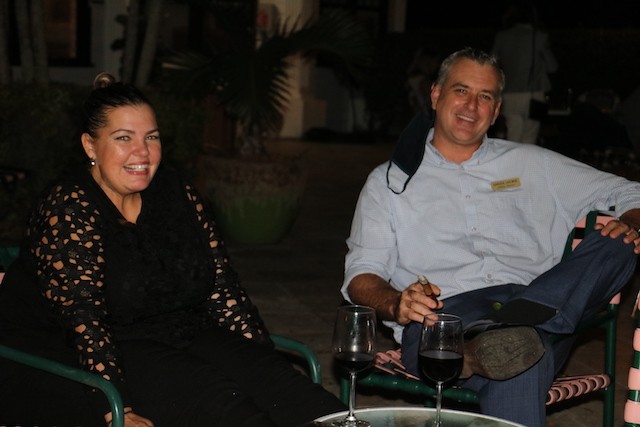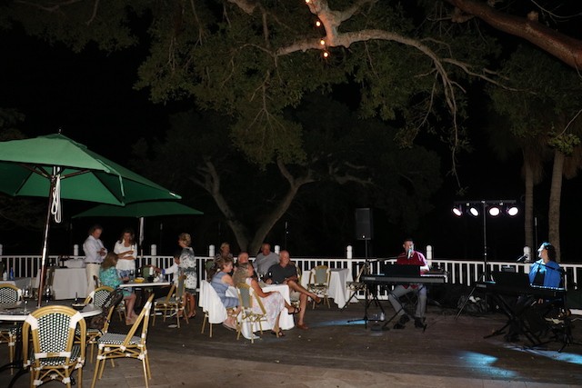 Welcome Back - Thoughts by Useppa General Manager Dakota Likewise and pictures by UseppaGin - Useppa Island's tradition of a November 'Welcome Back' for our members was a beautiful evening outdoors on the Collier Inn Patio. Not only was the stage set with lighted tiki torches, dueling pianos, our partners from local Fat Point Brewing Company with the new Useppa Logo beer and Southern Wine & Spirits with French and New Zealand fine wines, but the food was delicious. Shrimp Cocktail, Gnocchi to order, carved leg of beef, and an array of desserts to finish it off.