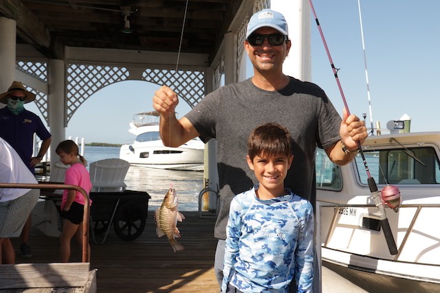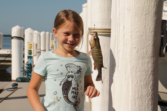 Fish and Boats Everywhere - Thoughts and Pictures by UseppaGin - It was a good day for fishing and a good day for a boat trip to Useppa. Children on the dock fished in the Thanksgiving Izaak Walton Kids Fishing Tournament. Grownups and families arrived on their boats for lunch on Useppa. It was hard to tell who was having the most fun. Five year old Hadley caught the BIGGEST FISH thirteen inches long. Seven year old Emmerson caught the MOST UNIQUE FISH, a beautiful ten inch Sheepshead. Hudson only two years old won the YOUNGEST FISHERMAN TROPHY with ten fish. Six year old Harper won MOST FISH for a GIRL OVER SIX with eight fish. Tristan Fernandez caught the 2nd BIGGEST FISH at 12 inches and MOST FISH for a BOY OVER SIX with 12 fish. Thanks to Angela Vaughn and Captain Ken Horney for making it so much fun.