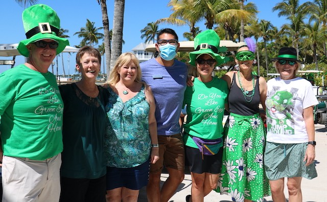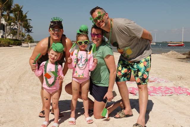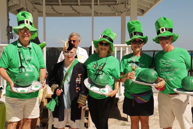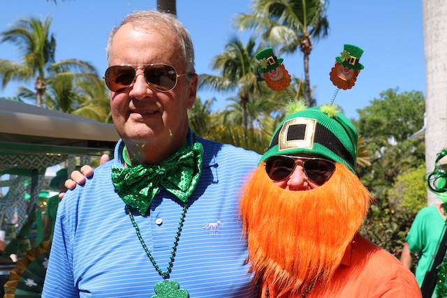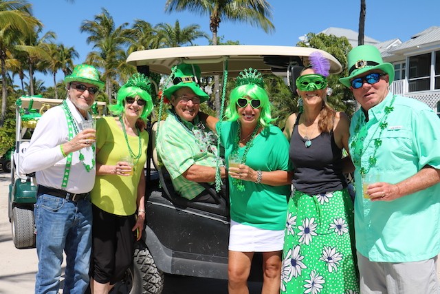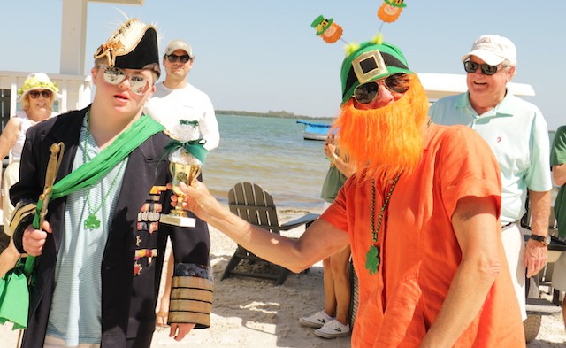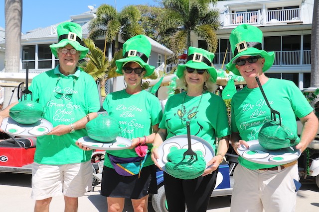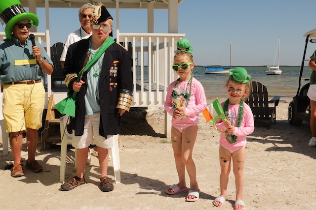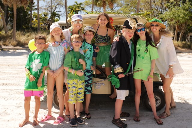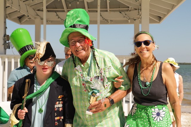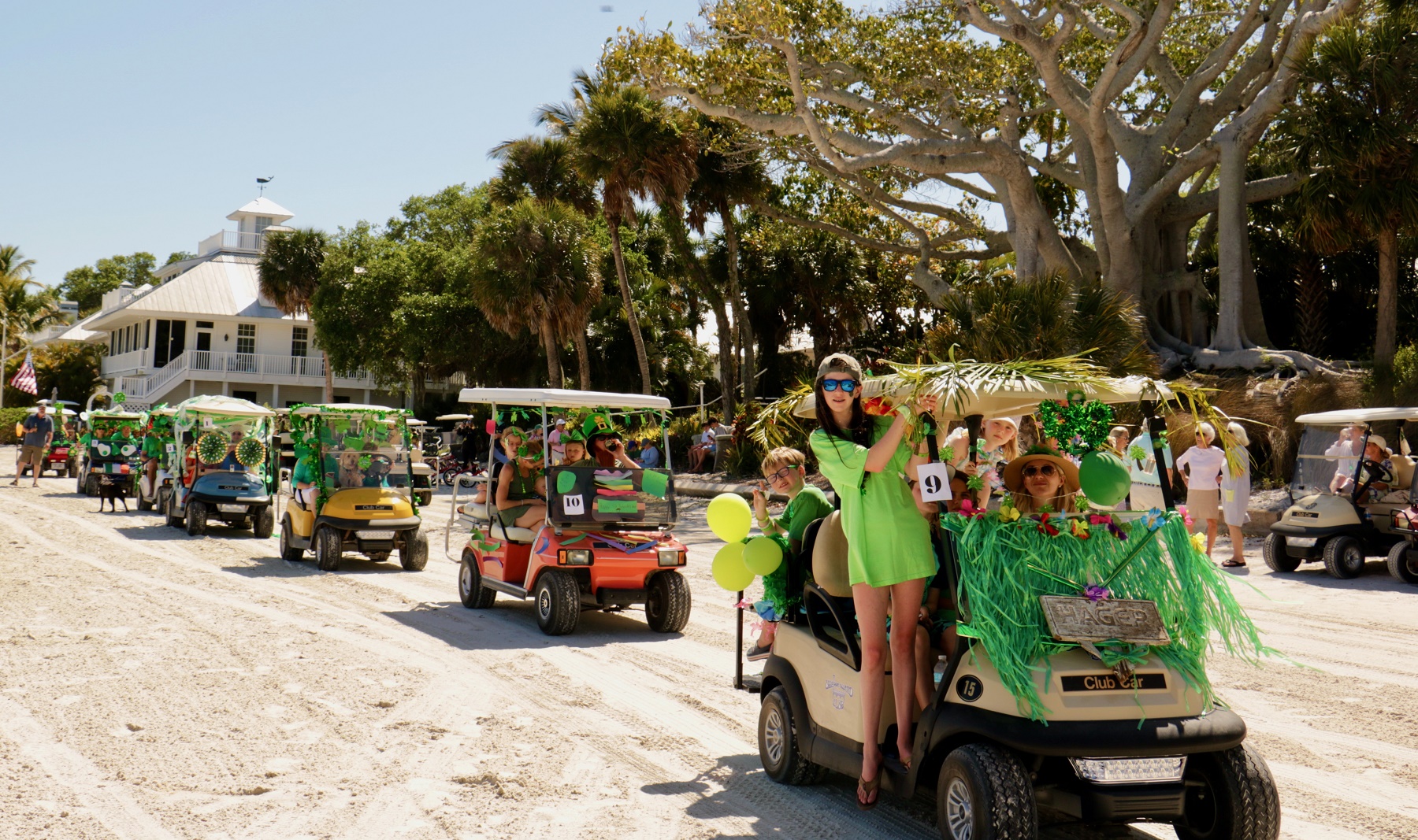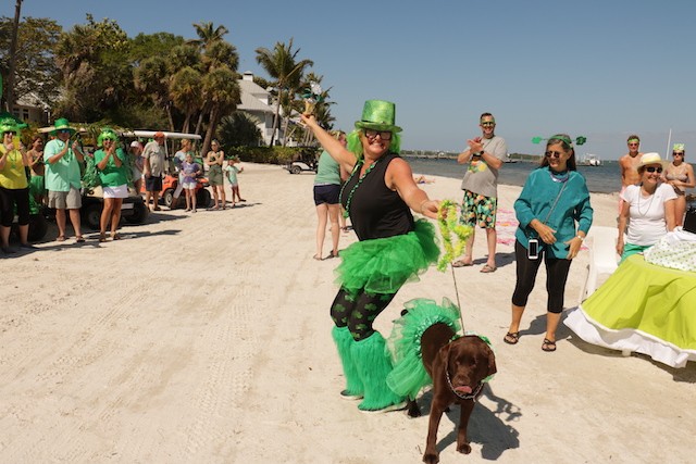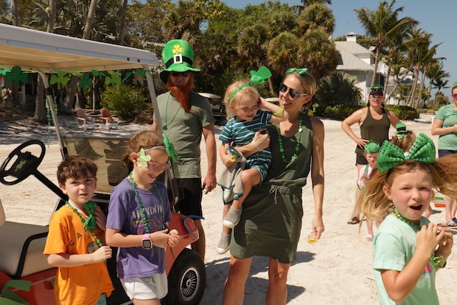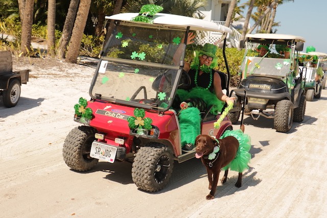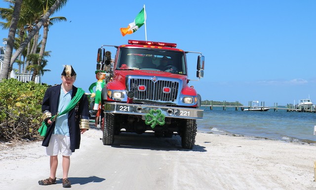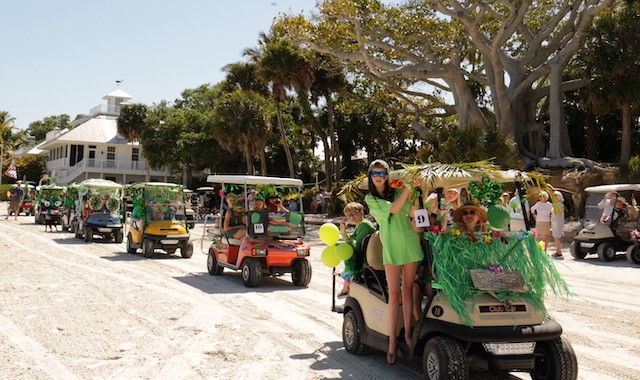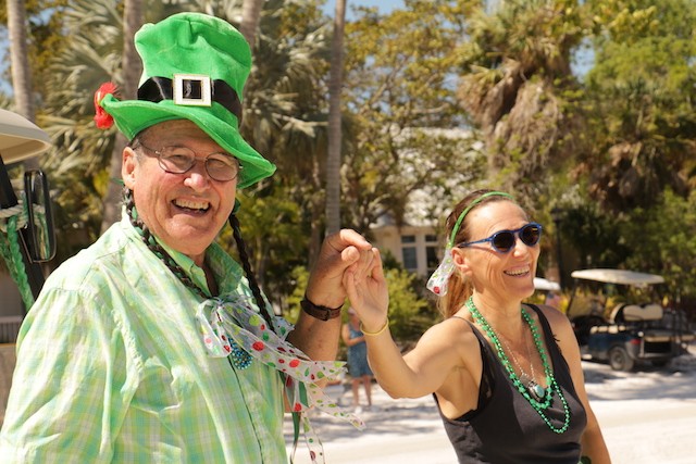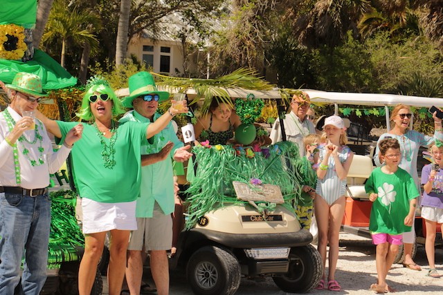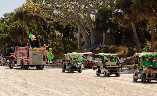 Saint Patrick's Day Useppa Style - Pictures and Thoughts by UseppaGin - The tradition goes back years. Decorated people and golf carts parade up and down the beach led by an Admiral and the Useppa Fire Truck. Way back the Admiral was a tall burly man, one of the first Useppa Island Club residents. This year his great grandson Ned led the parade. Folks who used to march watched from the sidelines as a new generation of grownups and children celebrated the holiday. Everyone won a prize but some winners were more distinguished than others with better dance moves or a slightly wittier presentation (painted coconuts were green eggs … and ham). Useppa’s first Parade Admiral had to be looking down with a smile.
