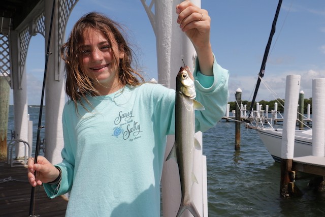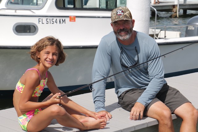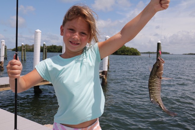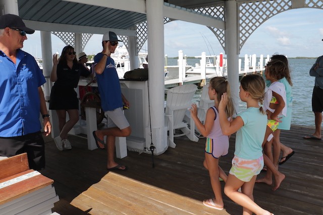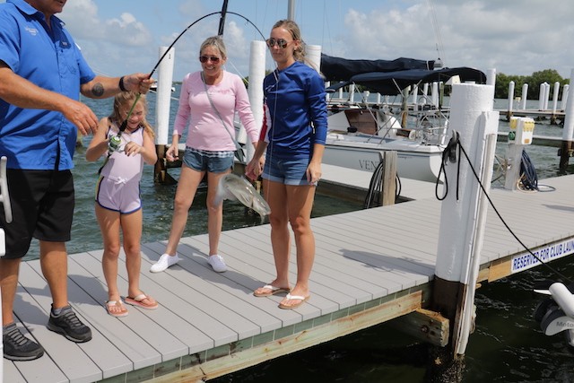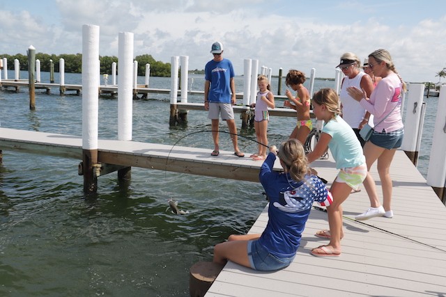 Life on the Dock, Fishing, and More - Thoughts and pictures by UseppaGin - Summer life on the Useppa docks has its own rhythms. People arrive by boat and tie up with the advice and help of Marina Captains. Groceries and packages are unloaded. Folks come and go on the Island launch. And over the 4th Weekend for the first time, there was an all-girl Kids Izaak Walton Fishing Tournament. Tropical Storm Elsa discouraged some families from coming to Useppa, but it didn’t deter four girls from throwing a line, waiting patiently for a bite, and determinedly reeling in a catch. Tournament veteran Kyle Corey administered the Fisherman’s Oath, his mentor captain Ken by his side. Each angler learned more about fishing and her confidence grew. Sometimes large numbers are fun, but there was something special about just four girls on the dock.