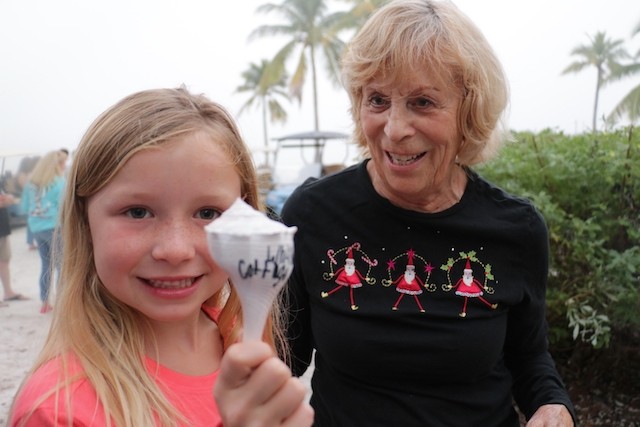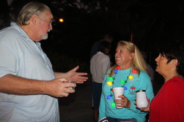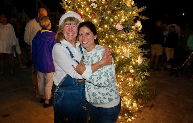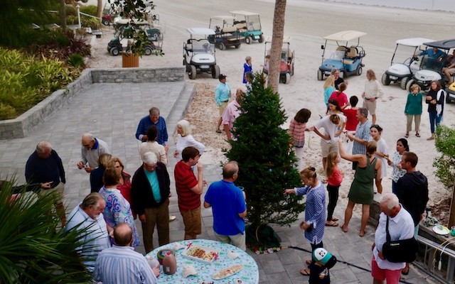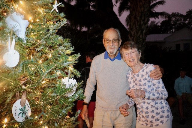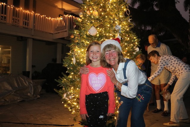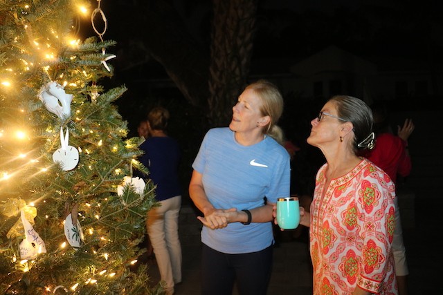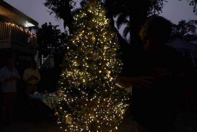 Useppa Tree Lighting, A New Tradition Begins - Thoughts by Cub Reporter Yardley Wiessen and Pictures by UseppaGin - We had a tree lighting party on Useppa, and we all made ornaments for the tree out of shells. Shelby Gatewood’s was probably my favorite because I loved her creativity in her work. There were also cookies, and personally, my favorite were the little sugar cookies! Shelby and Kay Chapin hosted the tree lighting. Ryan Conner lit the tree which he thought was very special! That is all for today’s news!!