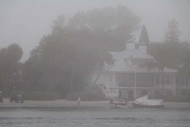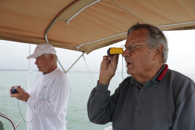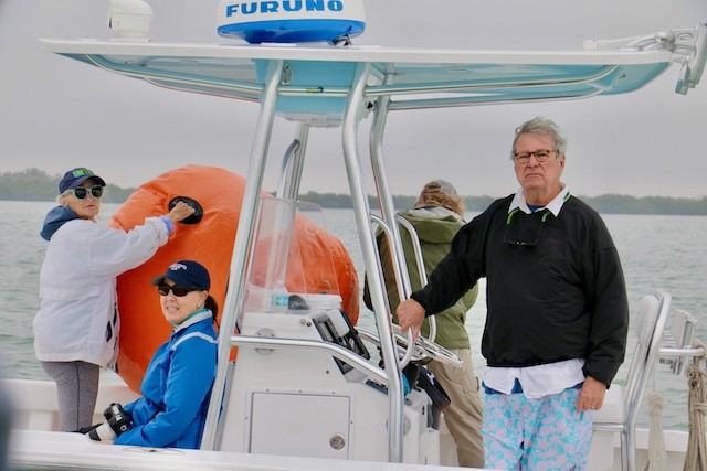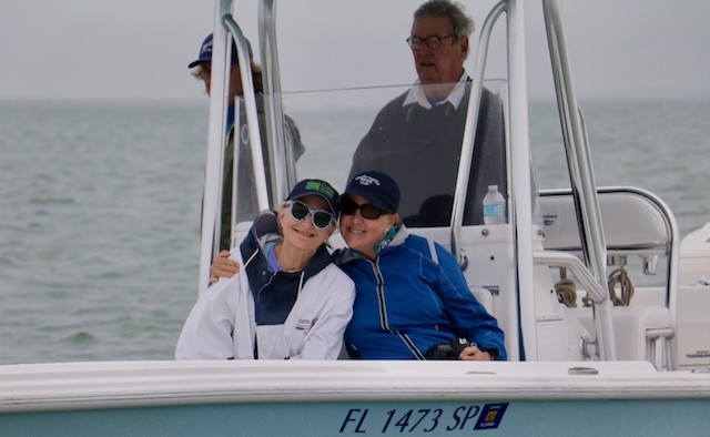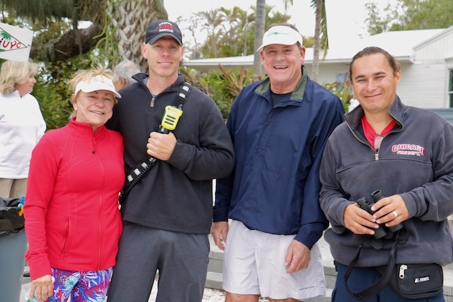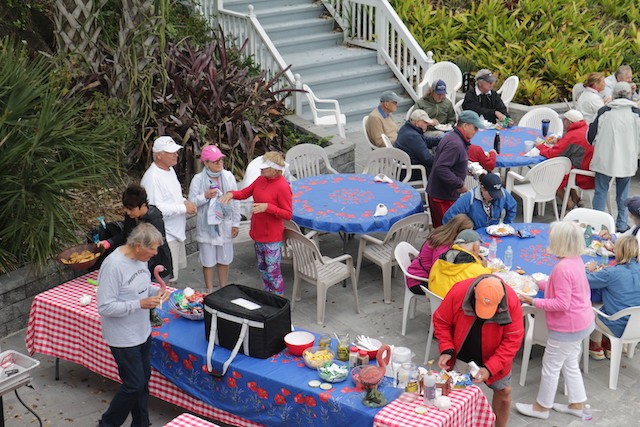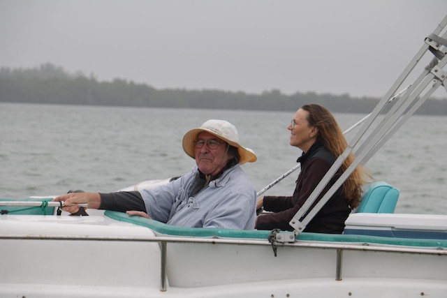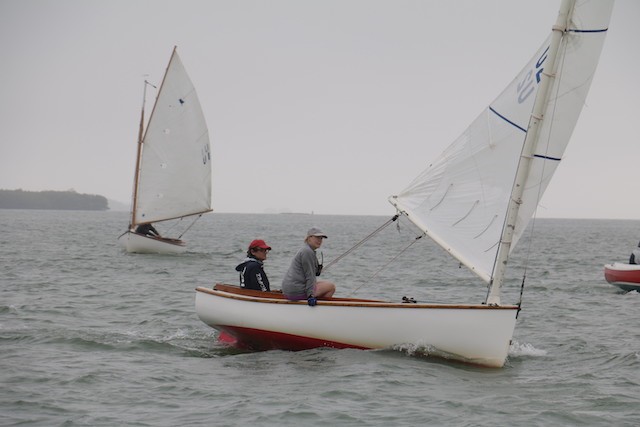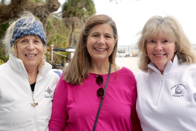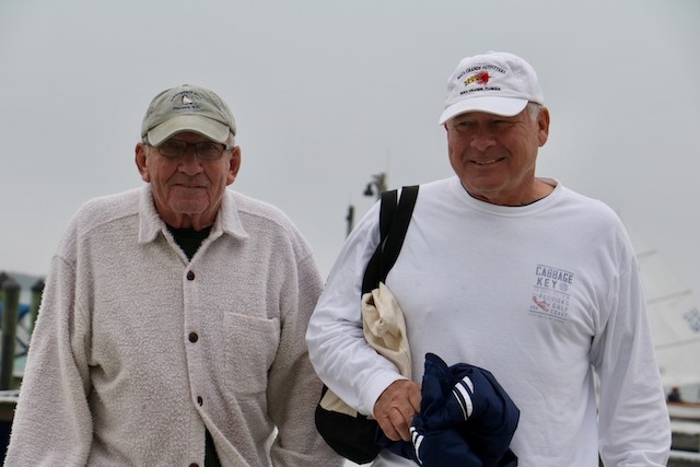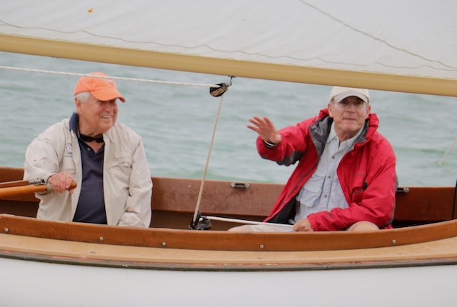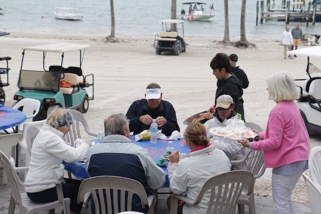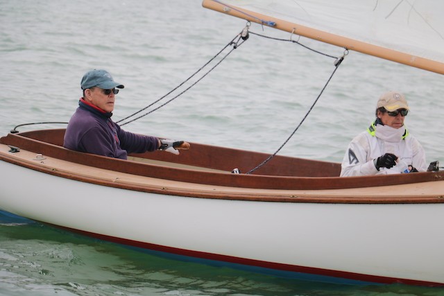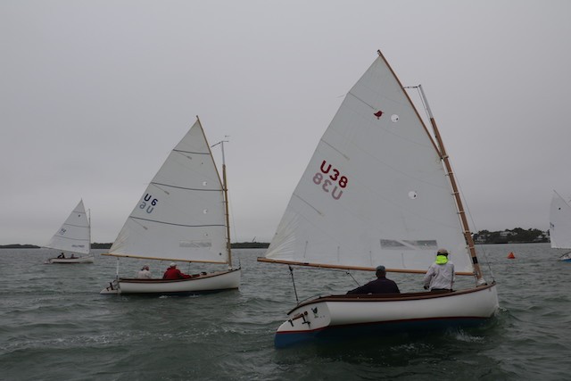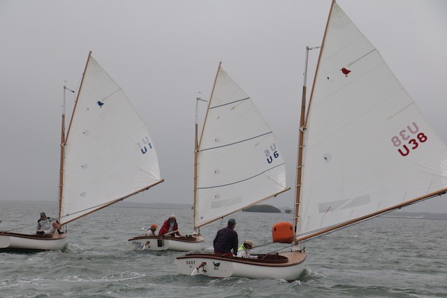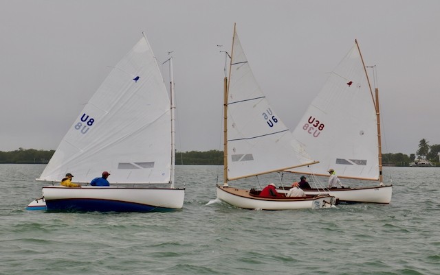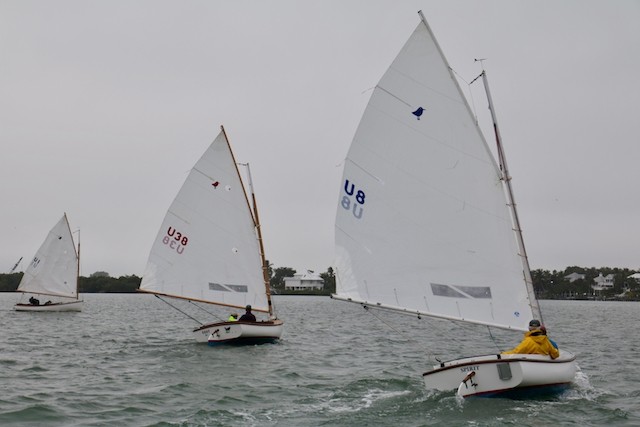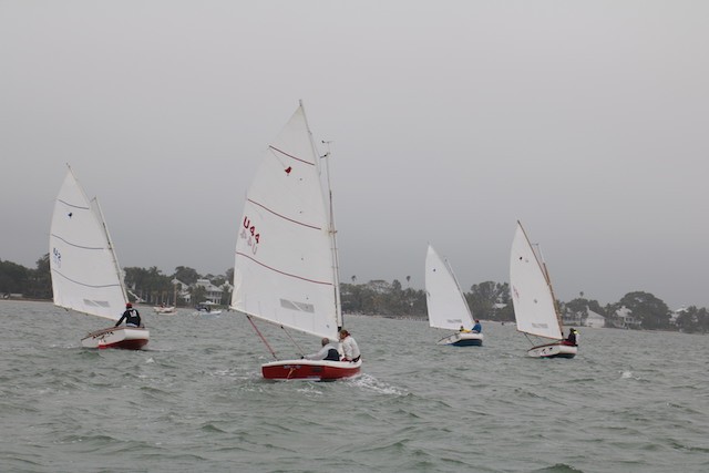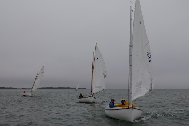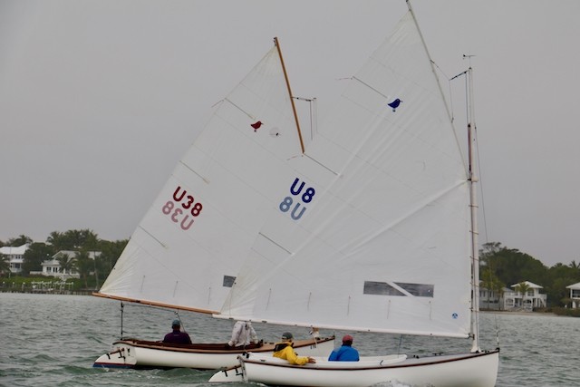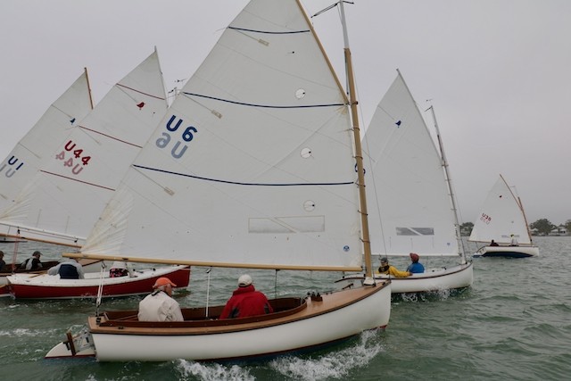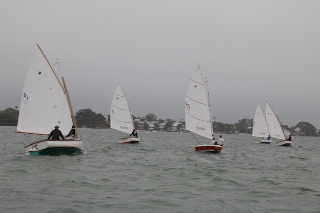 Sailing Fellowship - Thoughts by Bob Stevens - Pictures by Cindy Ryan and UseppaGin - The season started Saturday, February 5th with not much wind, then some fog, followed by a nice breeze that turned everything COLD. An unusual morning for our racing season’s start. But with all that, six catboats were on the water. We ran four races, three with two legs, and the final one only one leg. The Committee boat started the last race and then ran up to the windward mark to set the finishing line, which finally got set after the winning boat had already crossed it. By then, though, we were all but frozen. Our first for the season, Bill’s Grille lunch was a thumping success. Thanks to everyone who made our first day of sailing so much fun. Our hearts were warmed even if our fingers were numb.