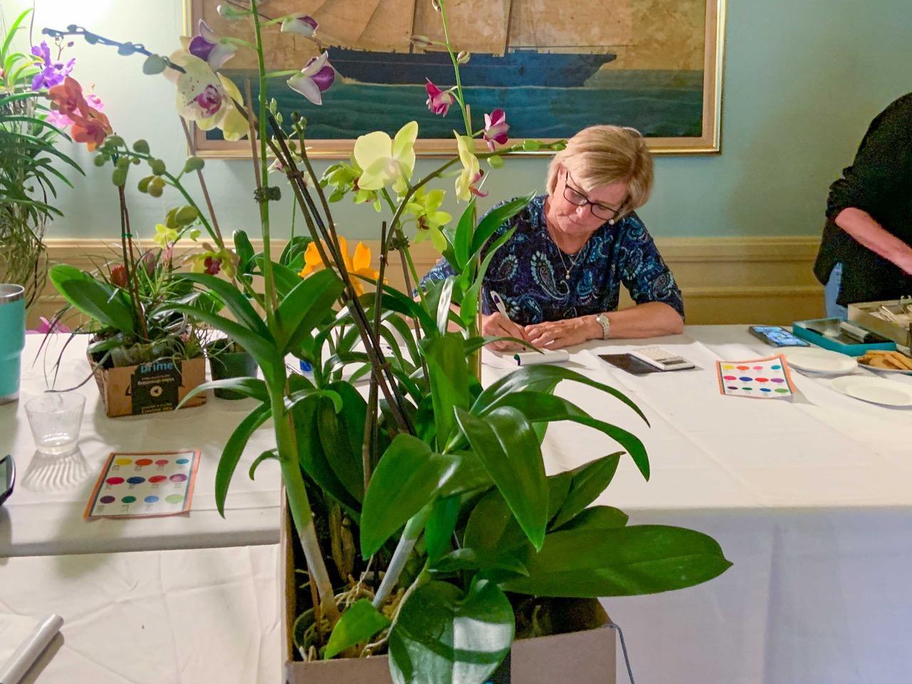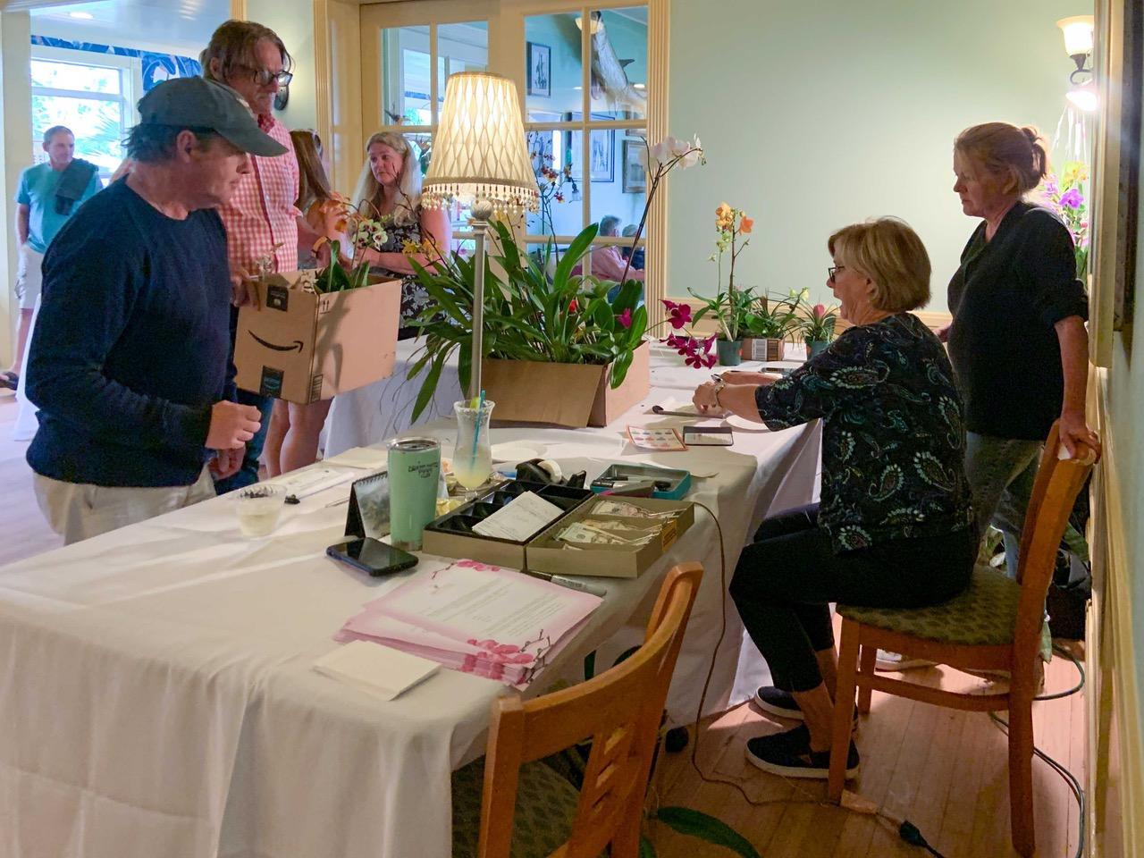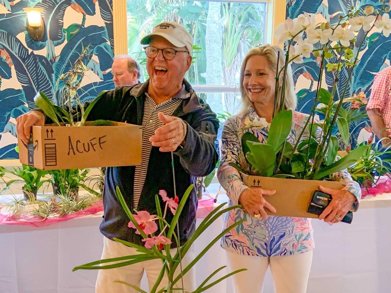 Orchid Lovers and Football Fans - Pictures by Cynthia Ryan and Nicole Lukas - Orchid Thoughts by Duncan Rowley: A Super Bowl at the Tarpon Bar needs no words - The Orchid Extravaganza held Sunday, February 13th, sponsored by the Useppa Paradise Partnership, was a smashing success. Over 350 orchids, bromeliads, and epiphyte plants were sold mostly to island homeowners to beautify their homes and gardens. Over 20 UPP members worked to organize, select, and transplant the plants, then set everything up. The Collier Inn, which hosted the event, was a glorious venue generously donated by Donald Beckstead and helped ensure the success of the sale. Thank you to all who helped including a staff member who gave up his day off.