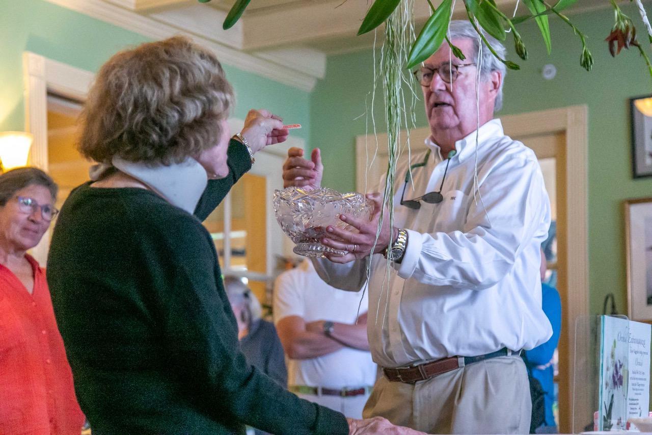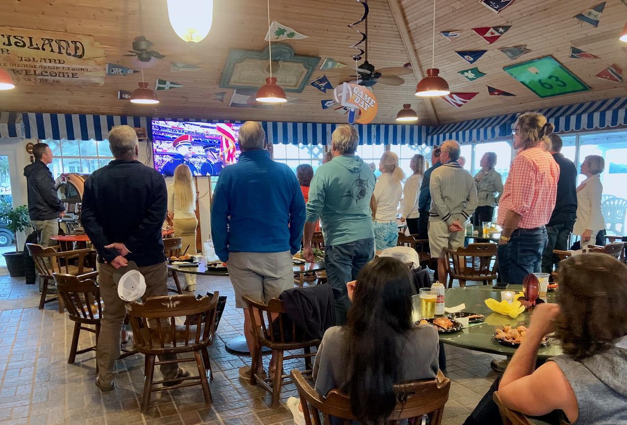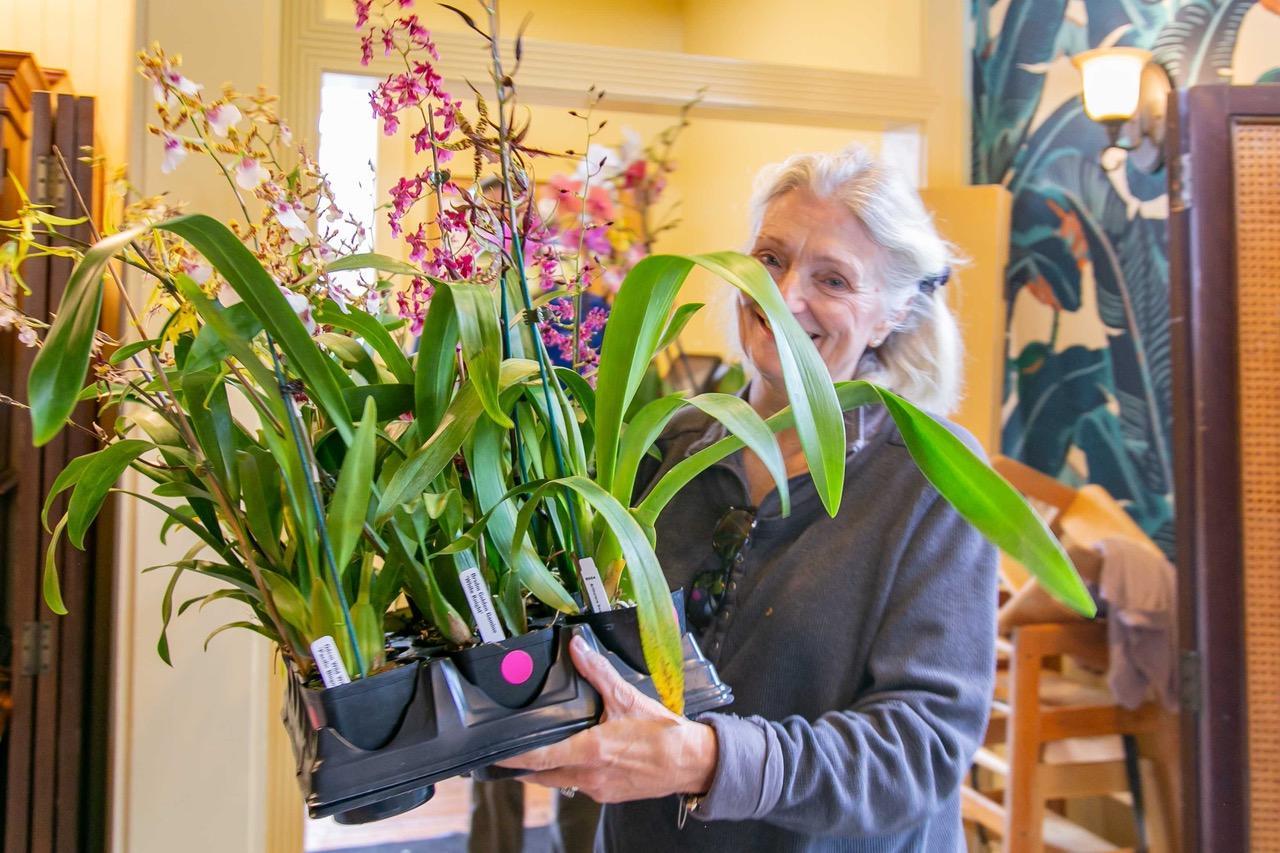 Orchid Lovers and Football Fans - Pictures by Cynthia Ryan and Nicole Lukas - Orchid Thoughts by Duncan Rowley: A Super Bowl at the Tarpon Bar needs no words - The Orchid Extravaganza held Sunday, February 13th, sponsored by the Useppa Paradise Partnership, was a smashing success. Over 350 orchids, bromeliads, and epiphyte plants were sold mostly to island homeowners to beautify their homes and gardens. Over 20 UPP members worked to organize, select, and transplant the plants, then set everything up. The Collier Inn, which hosted the event, was a glorious venue generously donated by Donald Beckstead and helped ensure the success of the sale. Thank you to all who helped including a staff member who gave up his day off.